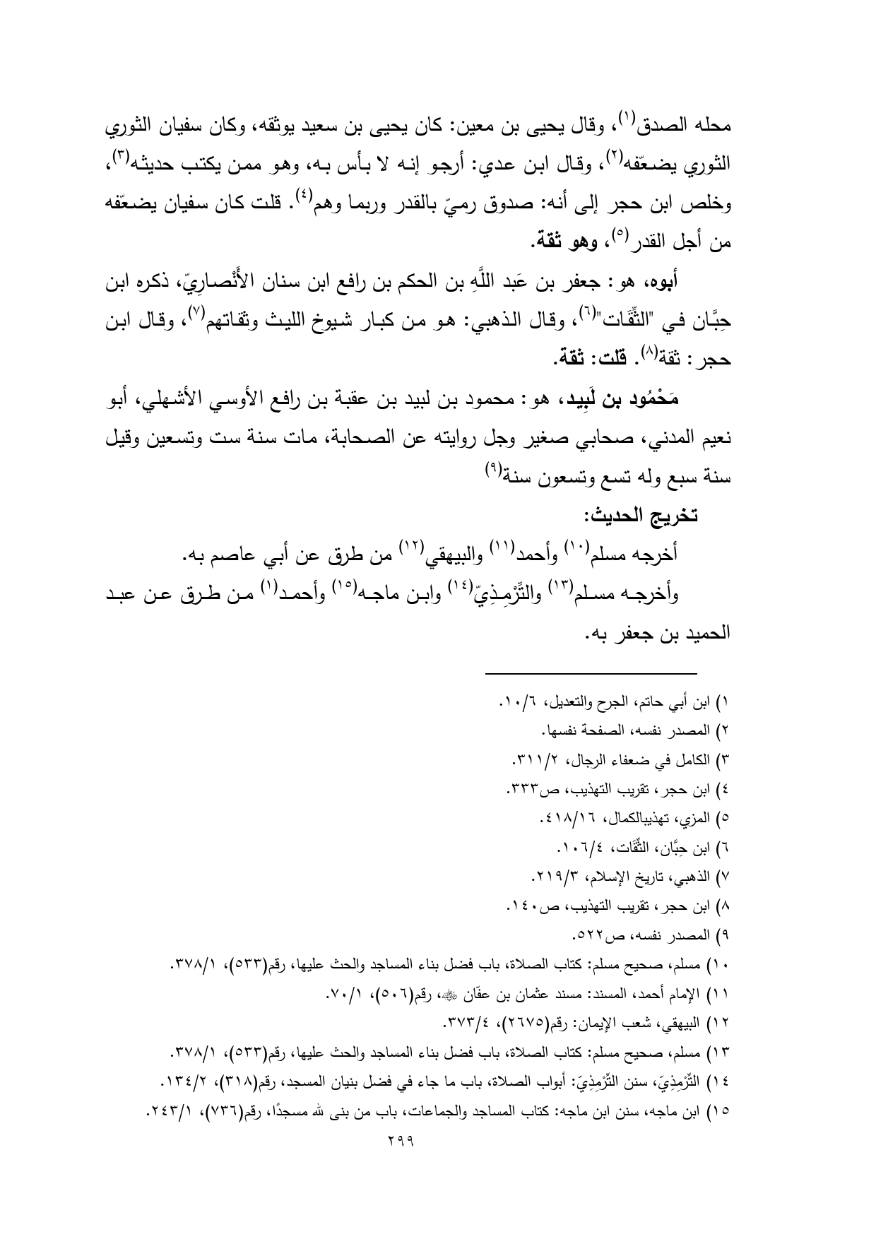 وأخرجه مسلم (¬13) والتِّرْمِذِيّ (¬14) وابن ماجه (¬15) وأحمد (¬16) من طرق عن عبد الحميد بن جعفر به.