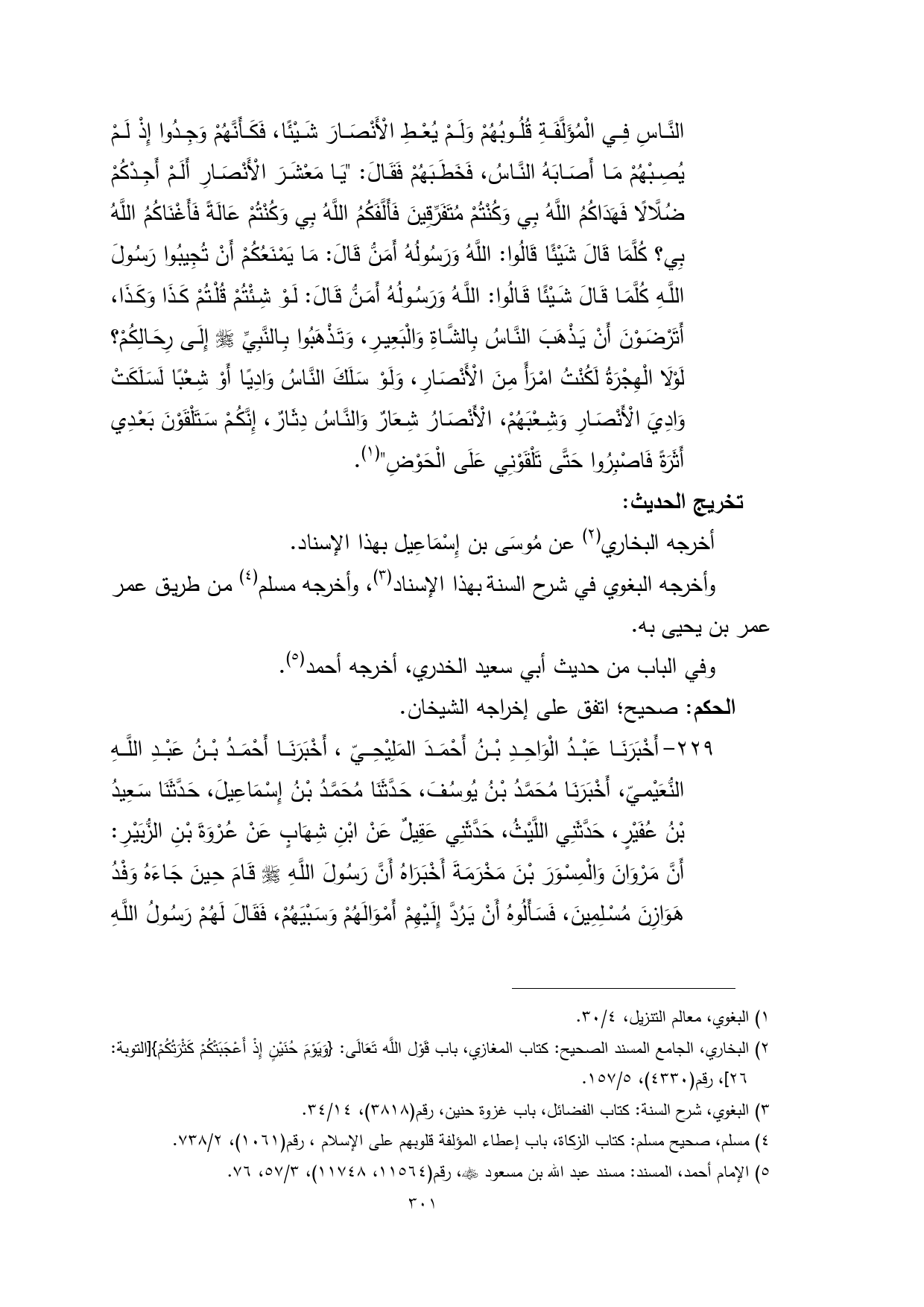(¬3) البغوي، شرح السنة: كتاب الفضائل، باب غزوة حنين، رقم (3818)، 14/ 34.