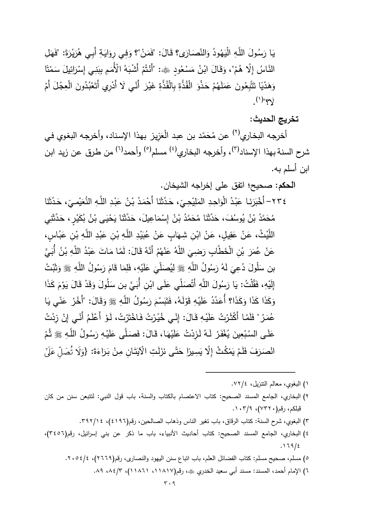 (¬5) مسلم، صحيح مسلم: كتاب الفضائل العلم، باب اتباع سنن اليهود والنصارى، رقم (2669)، 4/ 2054.