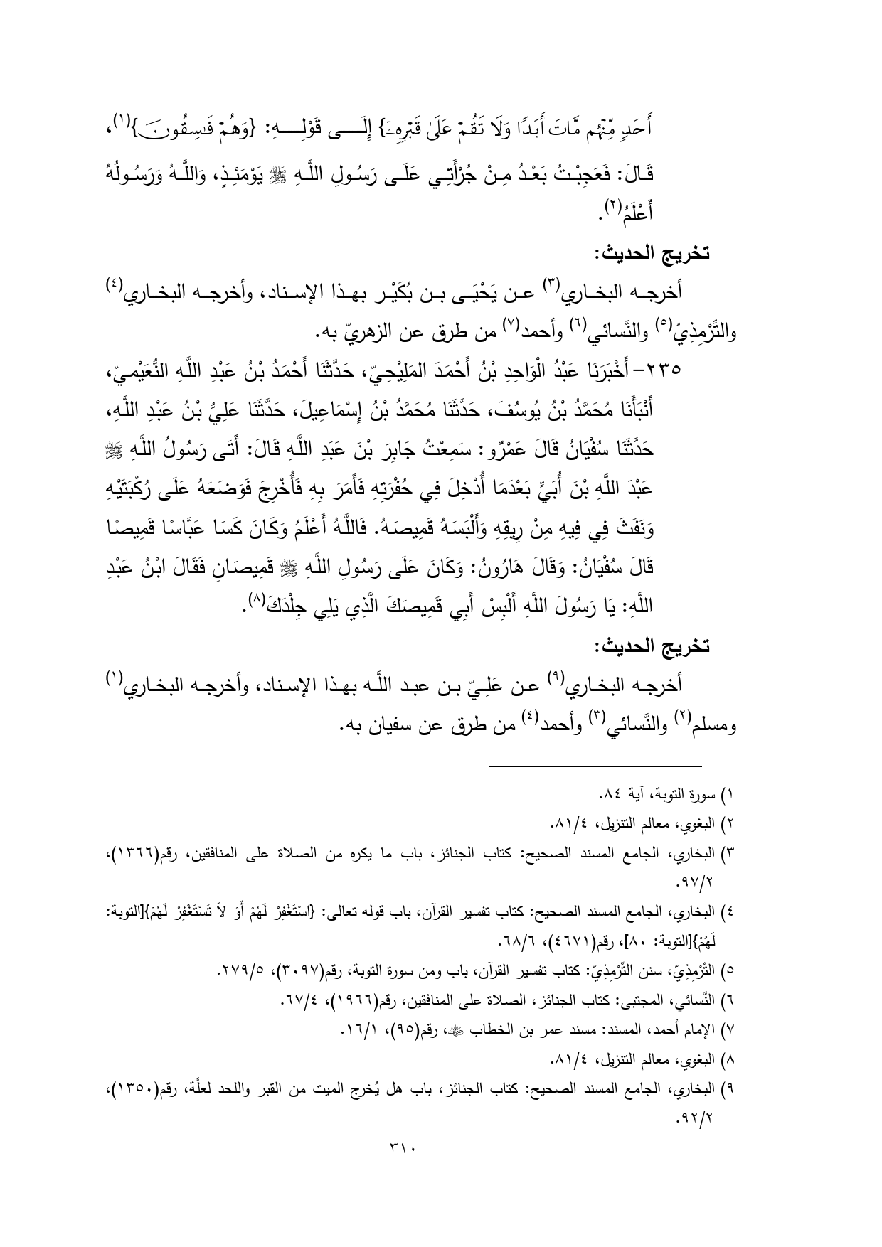 (¬3) البخاري، الجامع المسند الصحيح: كتاب الجنائز، باب ما يكره من الصلاة على المنافقين، رقم (1366)، 2/ 97.