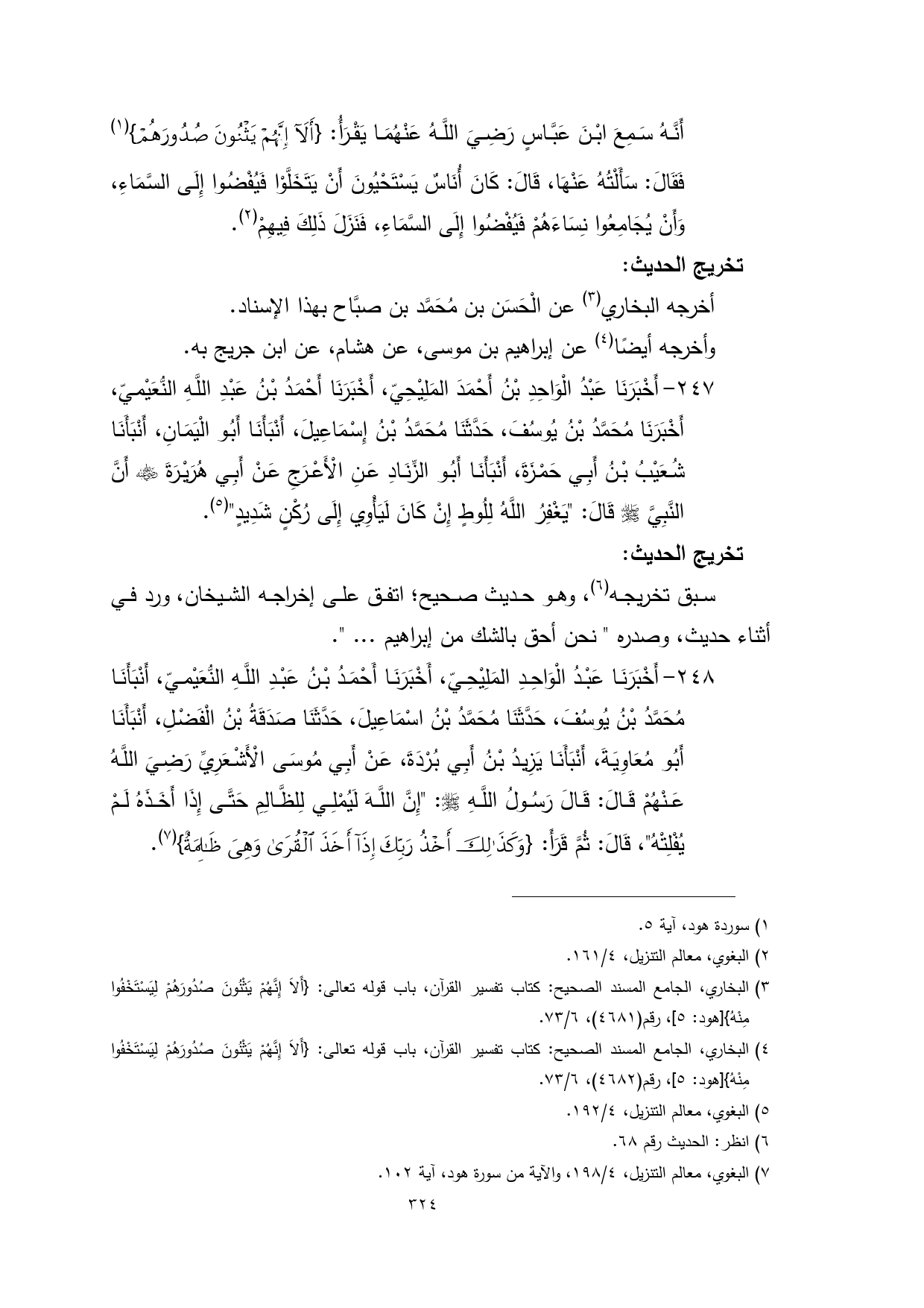 (¬7) البغوي، معالم التنزيل، 4/ 198، والآية من سورة هود، آية 102.