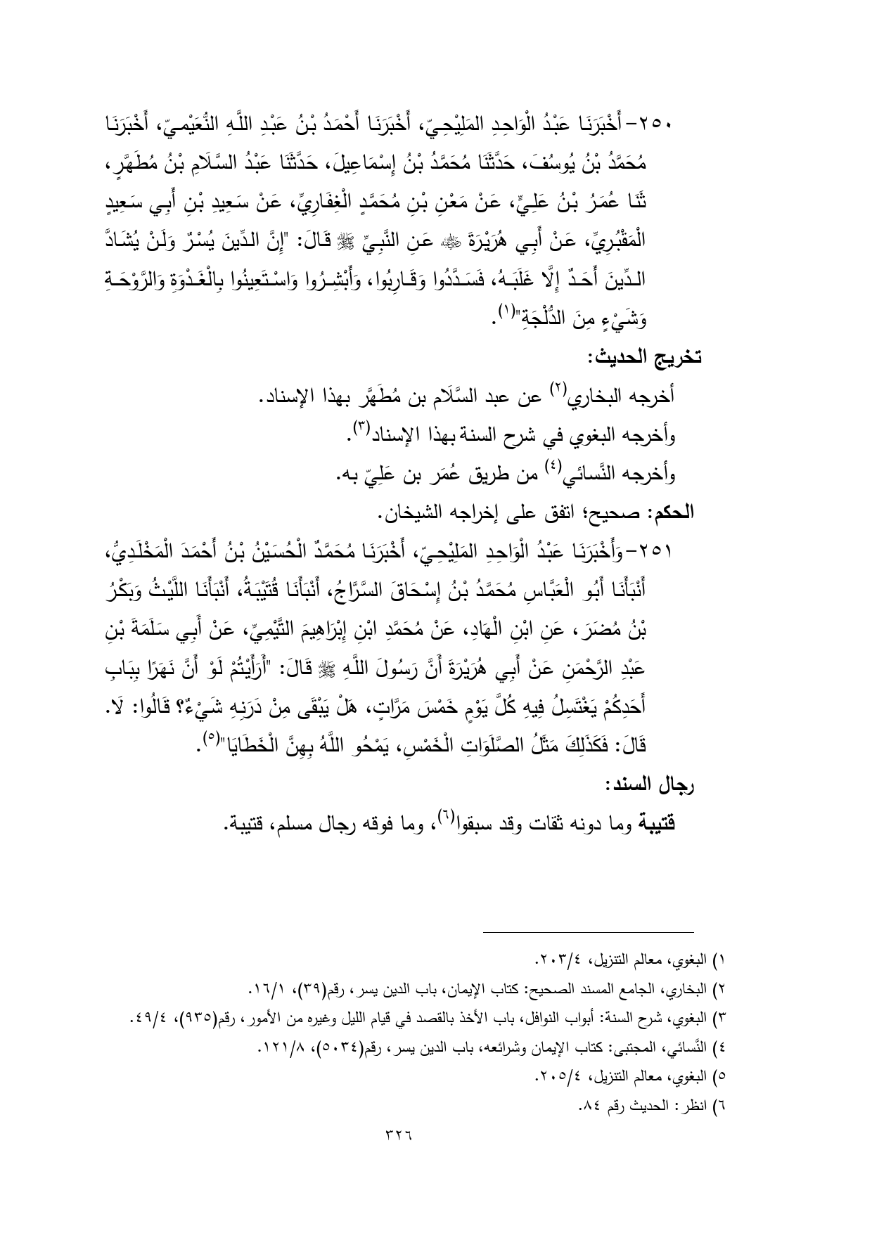 (¬3) البغوي، شرح السنة: أبواب النوافل، باب الأخذ بالقصد في قيام الليل وغيره من الأمور، رقم (935)، 4/ 49.