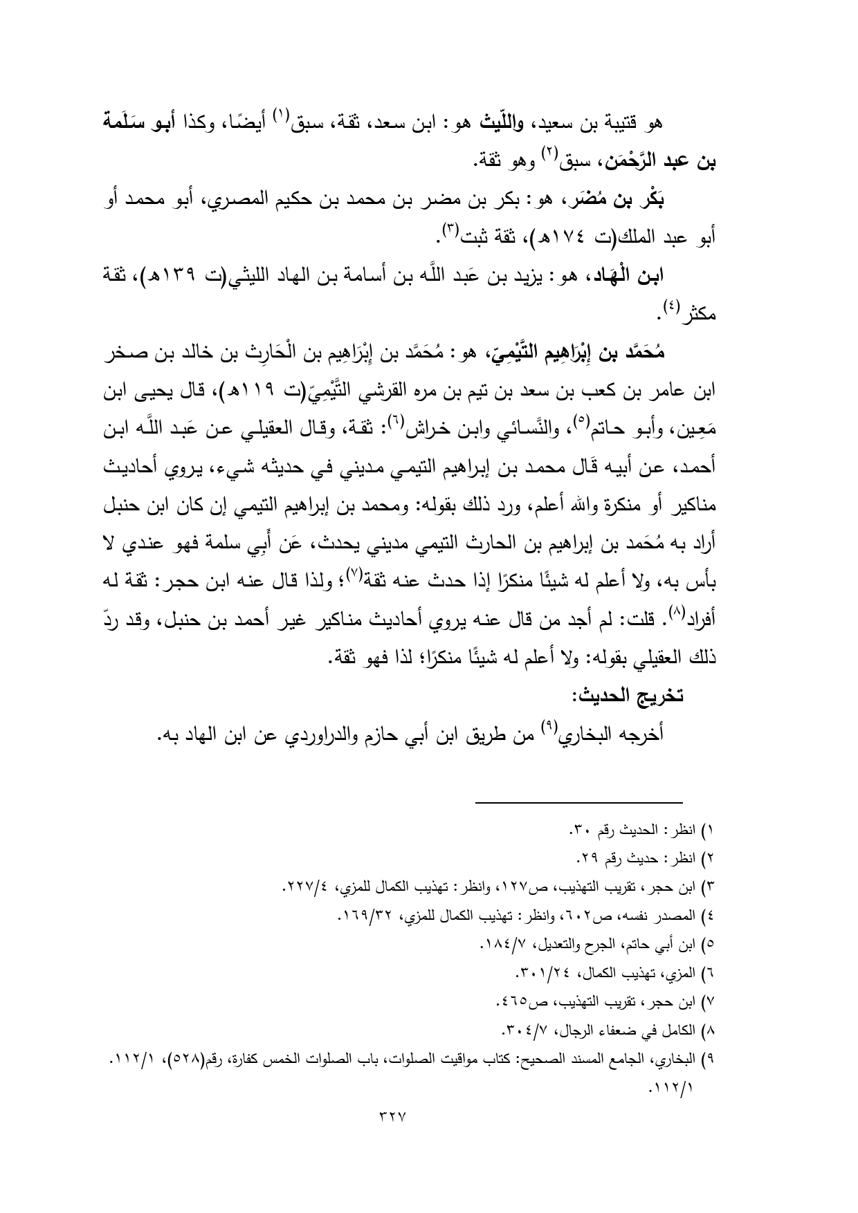أخرجه البخاري (¬9) من طريق ابن أبي حازم والدراوردي عن ابن الهاد به.