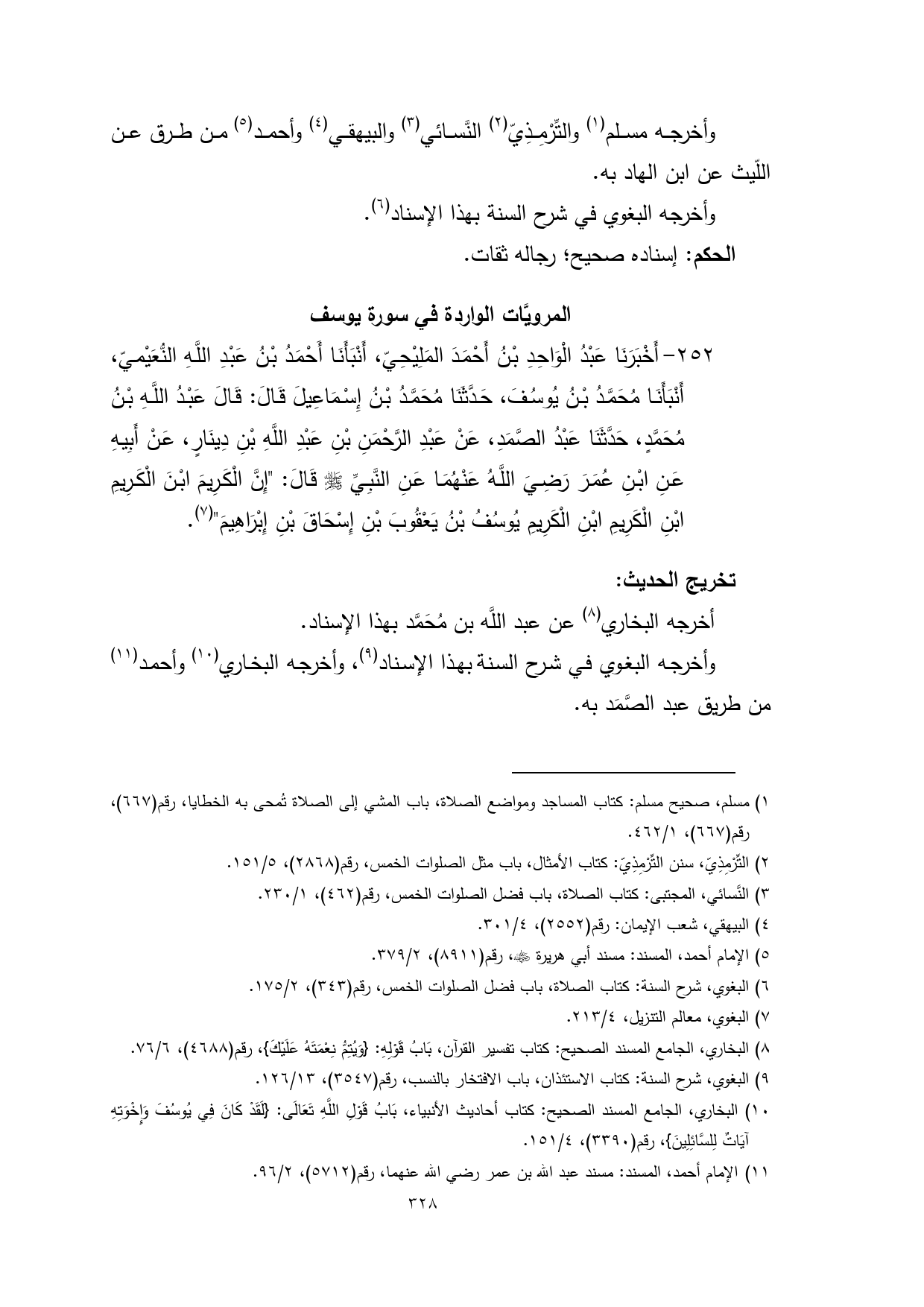 (¬10) البخاري، الجامع المسند الصحيح: كتاب أحاديث الأنبياء، بَابُ قَوْلِ اللَّهِ تَعَالَى: {لَقَدْ كَانَ فِي يُوسُفَ وَإِخْوَتِهِ آيَاتٌ لِلسَّائِلِينَ}، رقم (3390)، 4/ 151.
