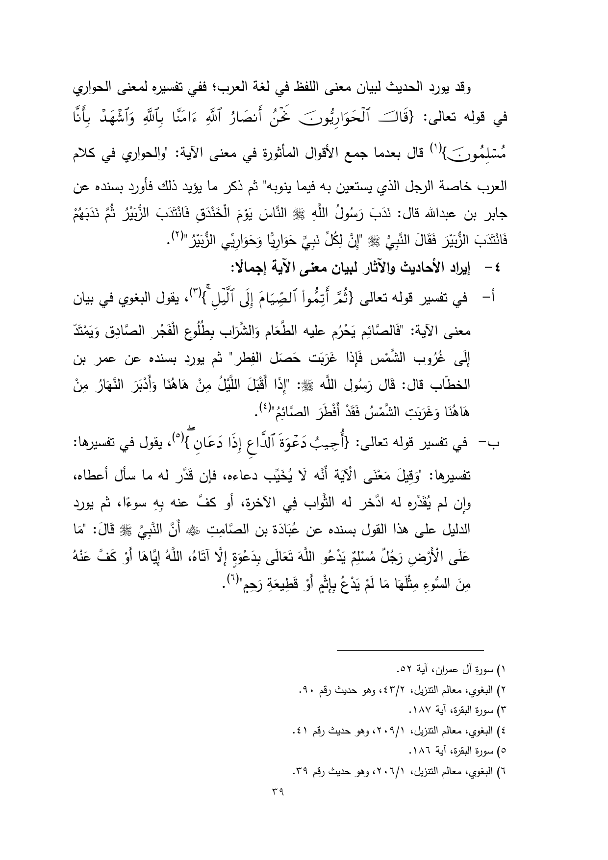 (¬6) البغوي، معالم التنزيل، 1/ 206، وهو حديث رقم 39.