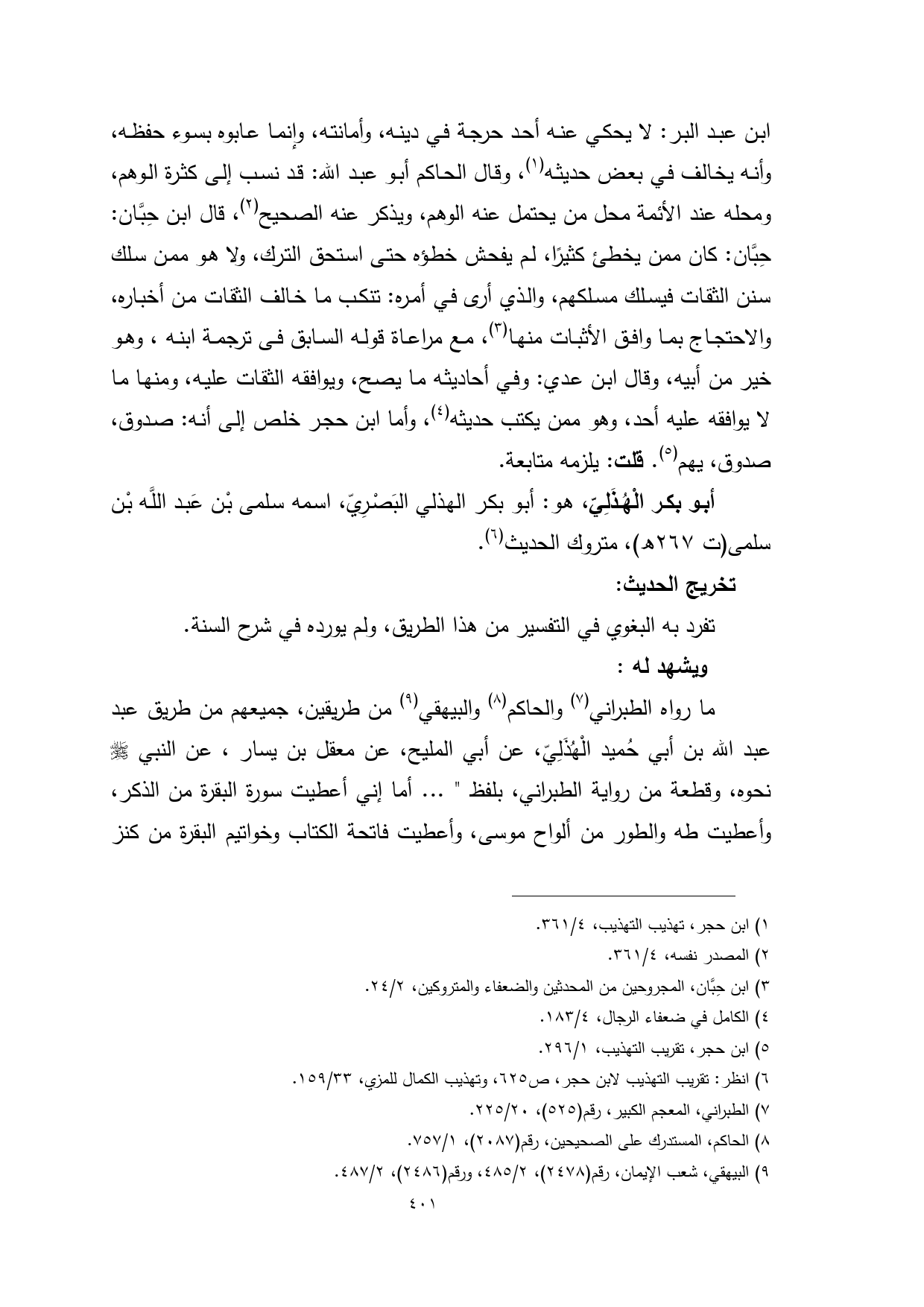 (¬6) انظر: تقريب التهذيب لابن حجر، ص 625، وتهذيب الكمال للمزي، 33/ 159.