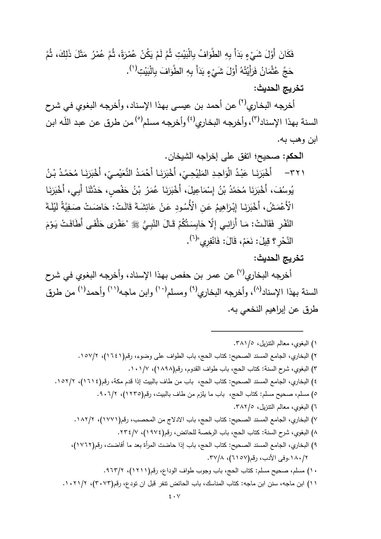 (¬8) البغوي، شرح السنة: كتاب الحج، باب الرخصة للحائض، رقم (1974)، 7/ 234.