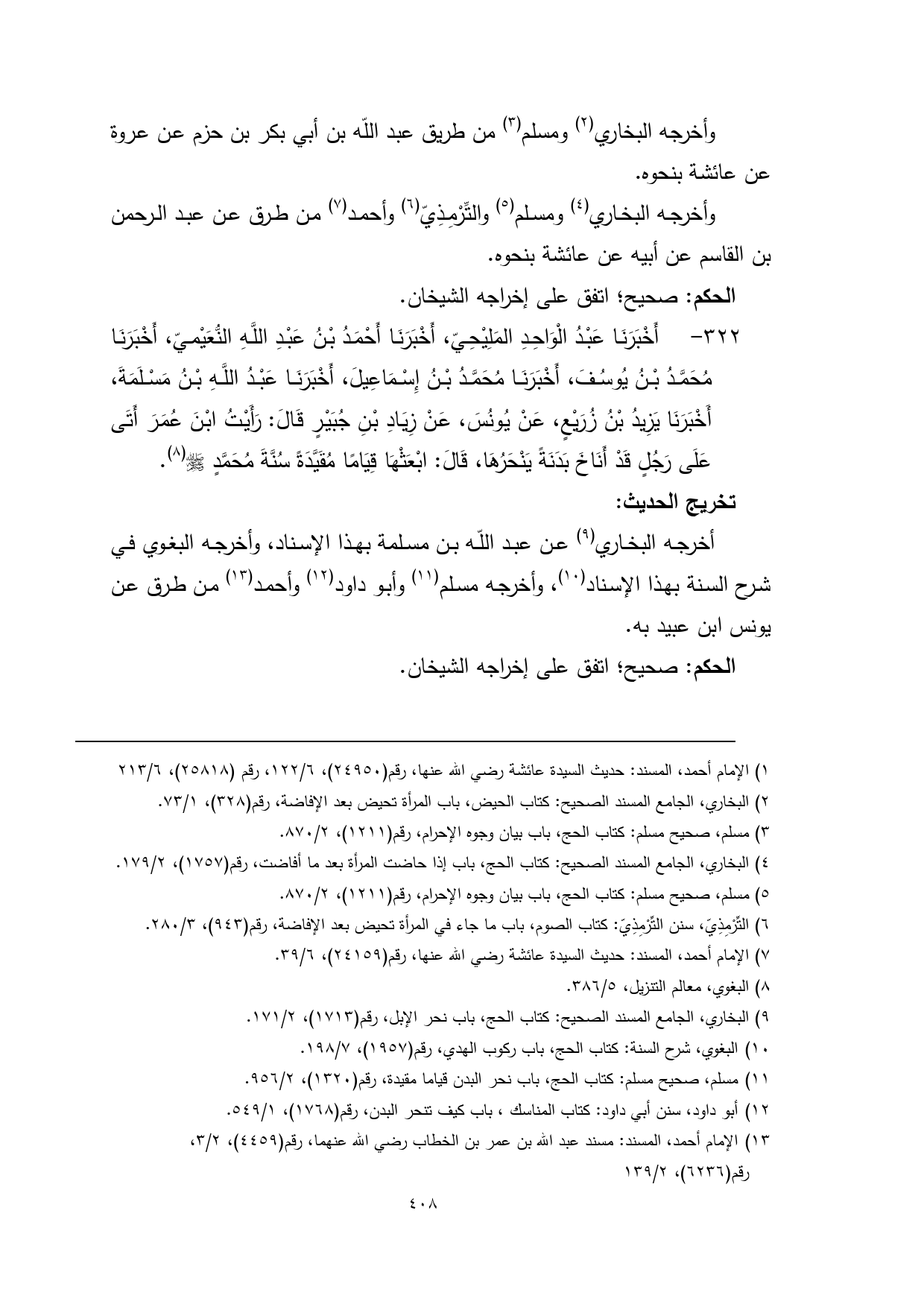 (¬8) البخاري، الجامع المسند الصحيح: كتاب الحج، باب نحر الإبل، رقم (1713)، 2/ 171.
