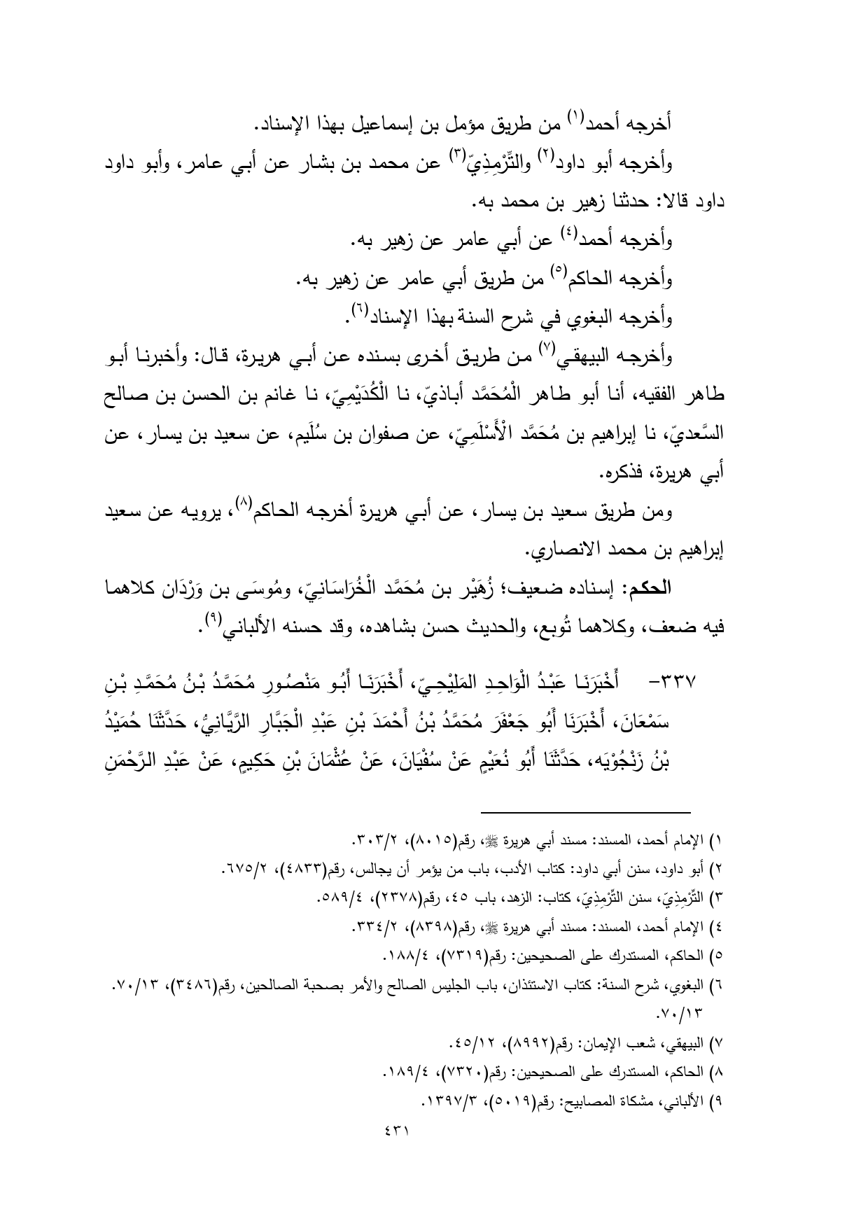 (¬4) الإمام أحمد، المسند: مسند أبي هريرة - صلى الله عليه وسلم -، رقم (8398)، 2/ 334.