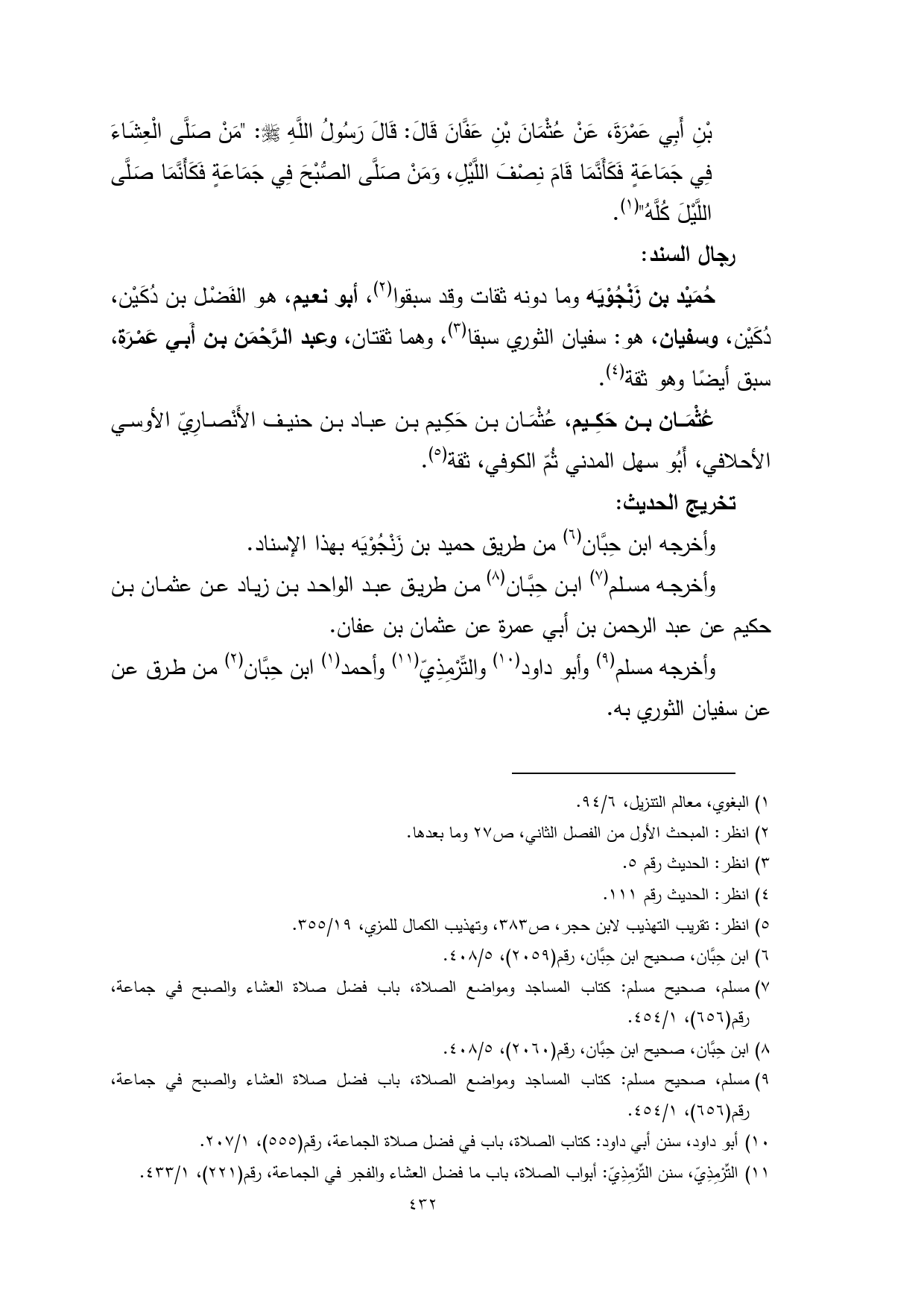 حُمَيْد بن زَنْجُوْيَه وما دونه ثقات وقد سبقوا (¬2)، أبو نعيم، هو الفَضْل بن دُكَيْن، وسفيان، هو: سفيان الثوري سبقا (¬3)، وهما ثقتان، وعبد الرَّحْمَن بن أَبي عَمْرَة، سبق أيضًا وهو ثقة (¬4).