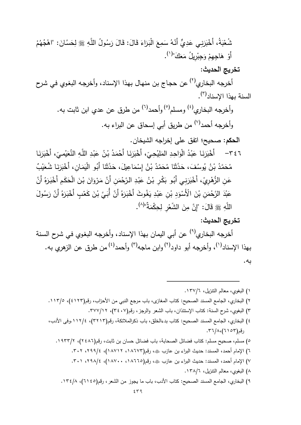 (¬3) البغوي، شرح السنة: كتاب الإستئذان، باب الشعر والرجز، رقم (3407)، 12/ 377.