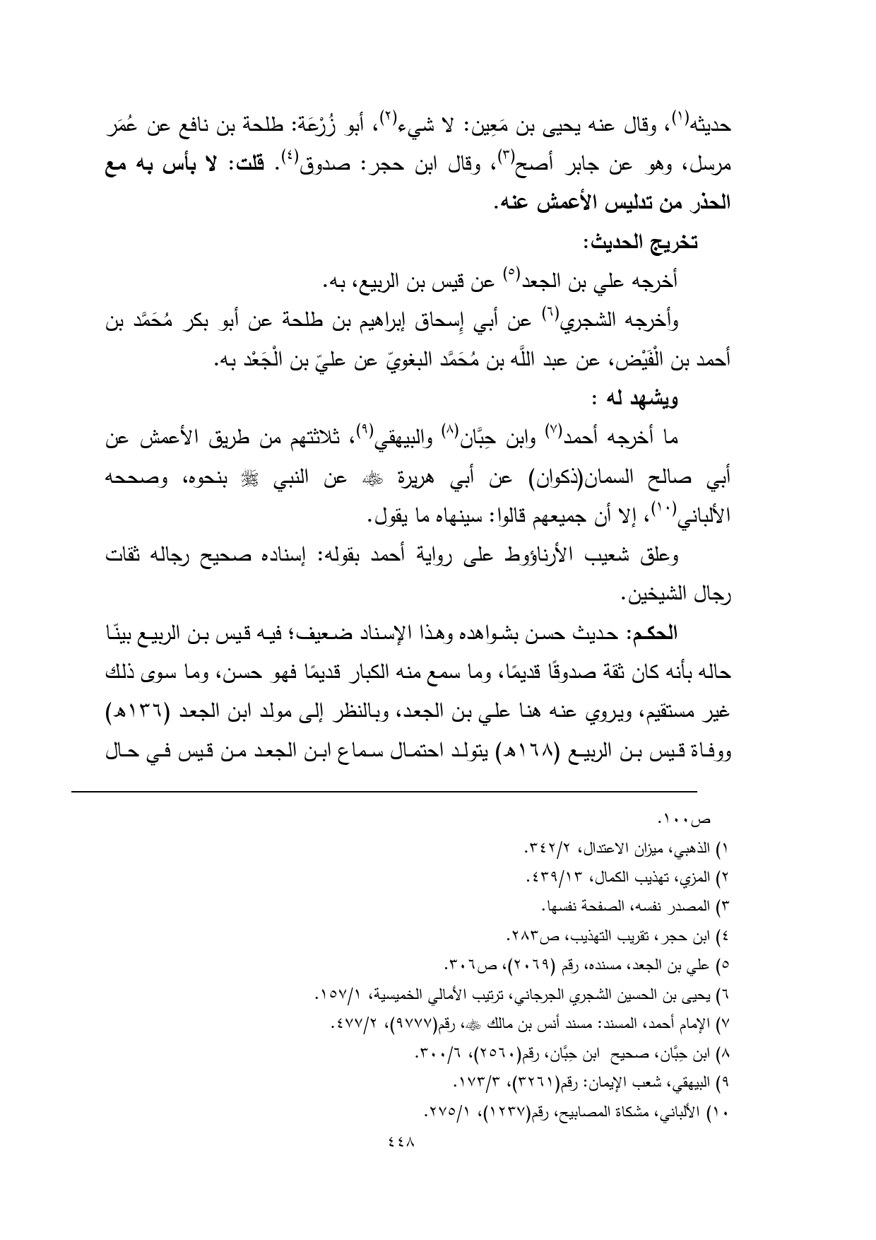 (¬5) علي بن الجعد، مسنده، رقم (2069)، ص 306.