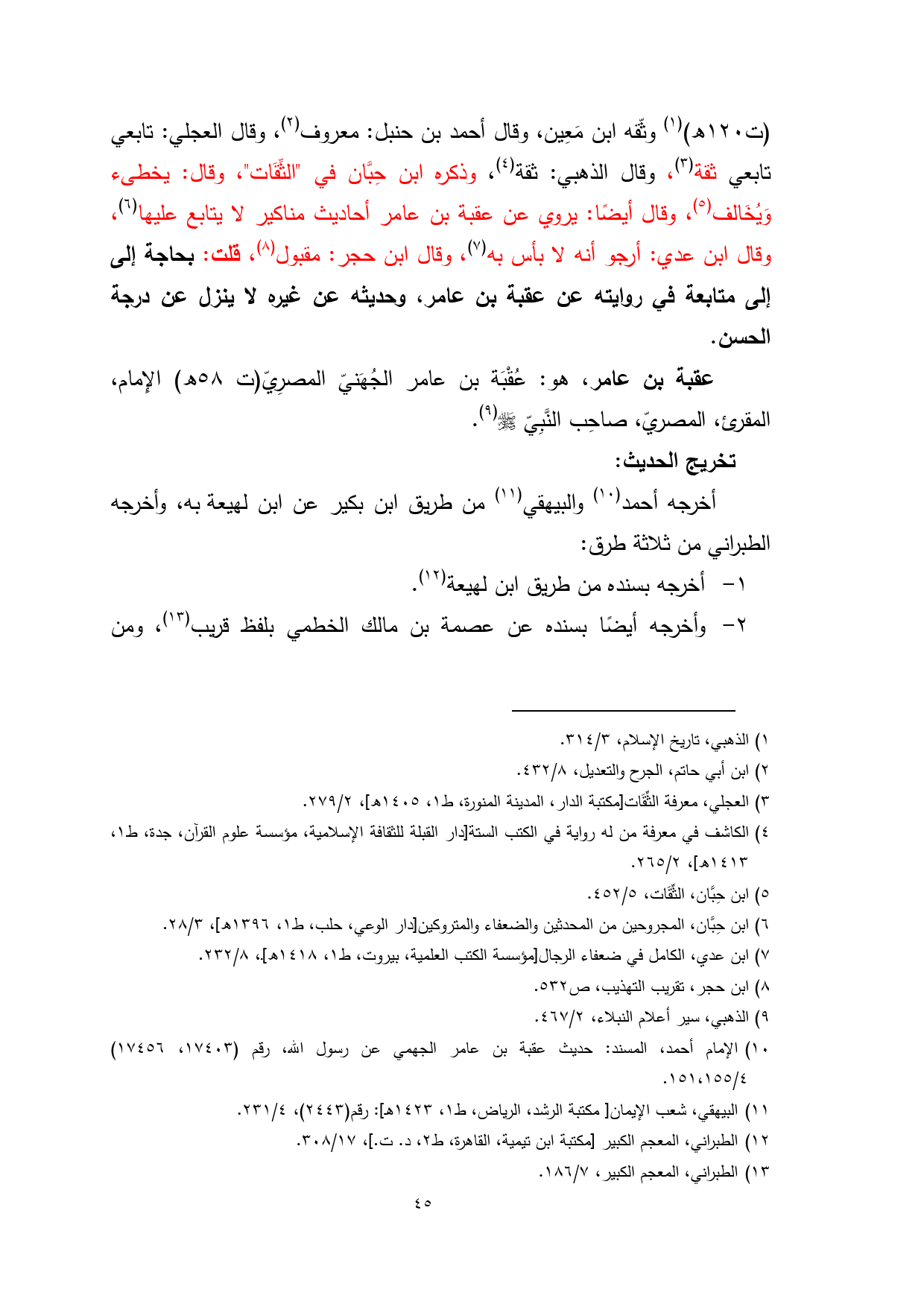 (¬10) الإمام أحمد، المسند: حديث عقبة بن عامر الجهمي عن رسول الله، رقم (17403، 17456) 4/ 151، 155.