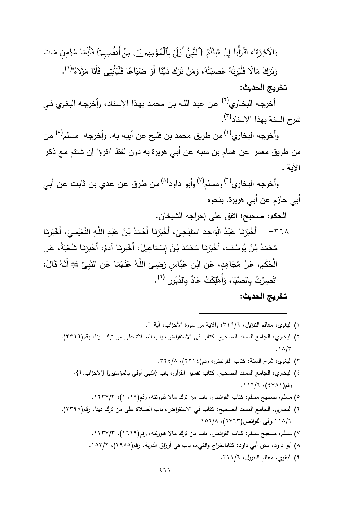 (¬3) البغوي، شرح السنة: كتاب الفرائض، رقم (2214)، 8/ 324.