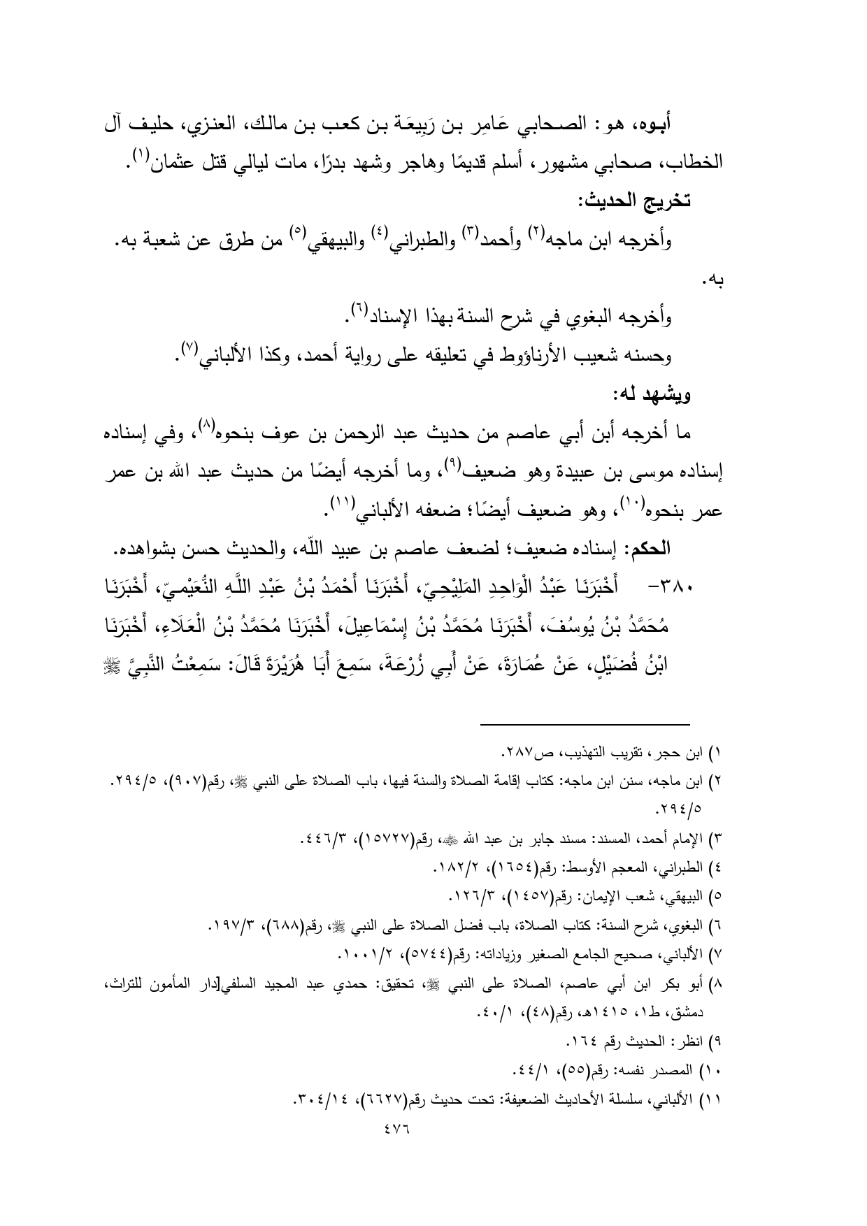 (¬8) أبو بكر ابن أبي عاصم، الصلاة على النبي - صلى الله عليه وسلم -، تحقيق: حمدي عبد المجيد السلفي] دار المأمون للتراث، دمشق، ط 1، 1415 هـ، رقم (48)، 1/ 40.