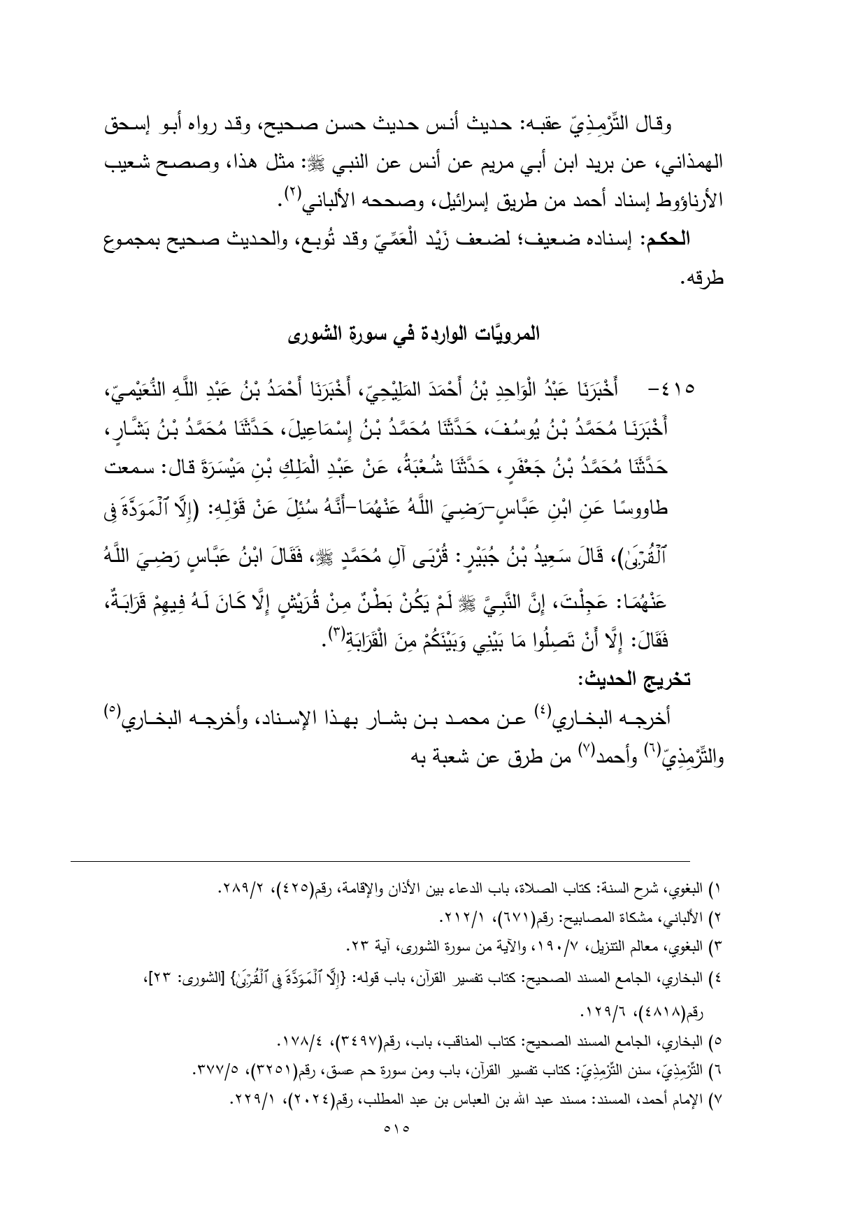 (¬2) البغوي، معالم التنزيل، 7/ 190، والآية من سورة الشورى، آية 23.