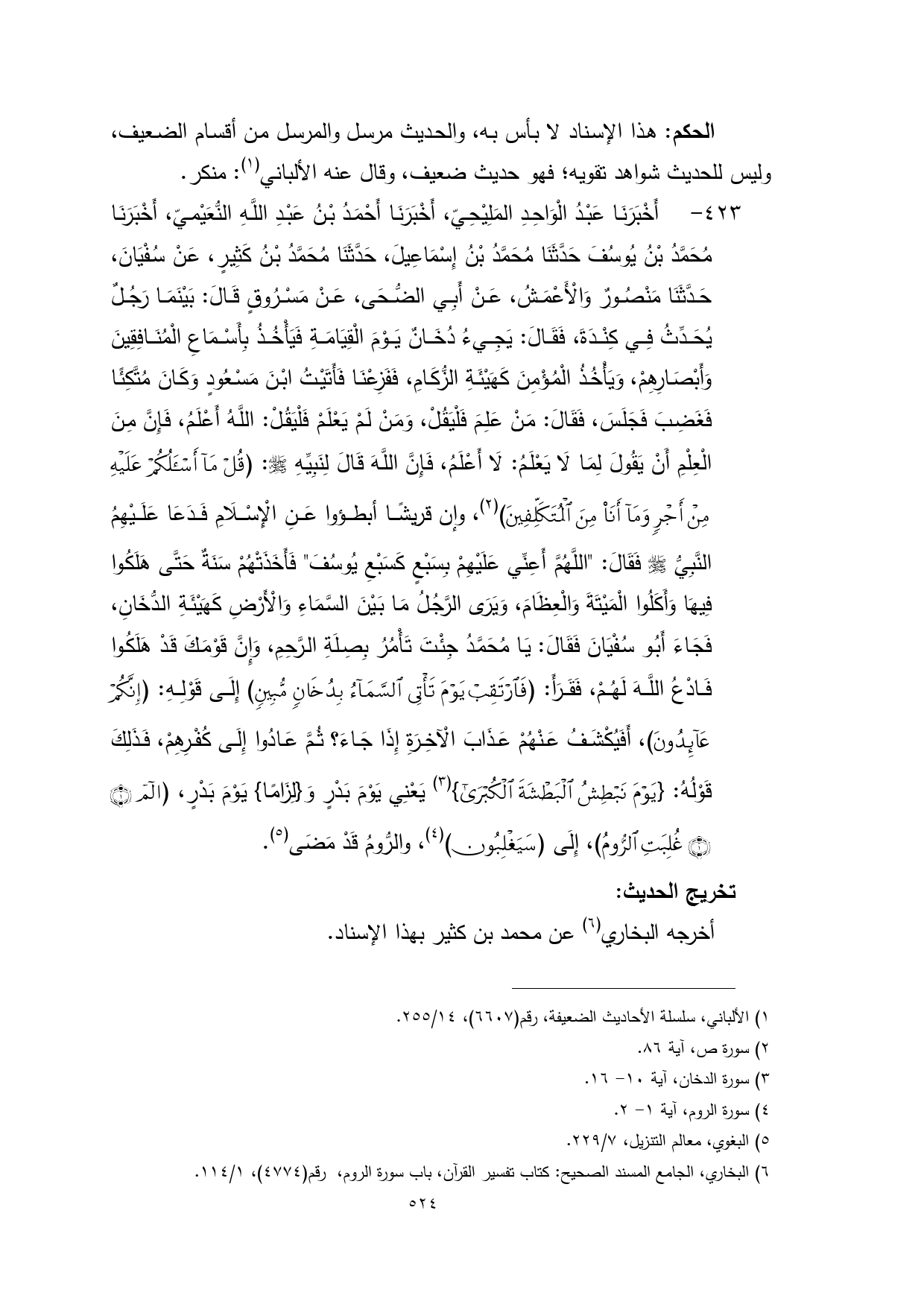 (¬6) البخاري، الجامع المسند الصحيح: كتاب تفسير القرآن، باب سورة الروم، رقم (4774)، 1/ 114.