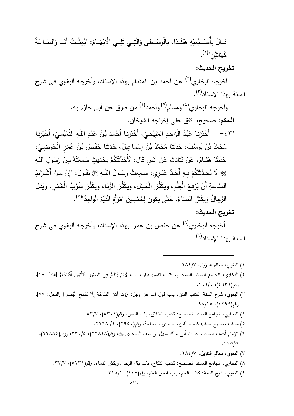 (¬9) البغوي، شرح السنة: كتاب العلم، باب قبض العلم، رقم (147)، 1/ 315.