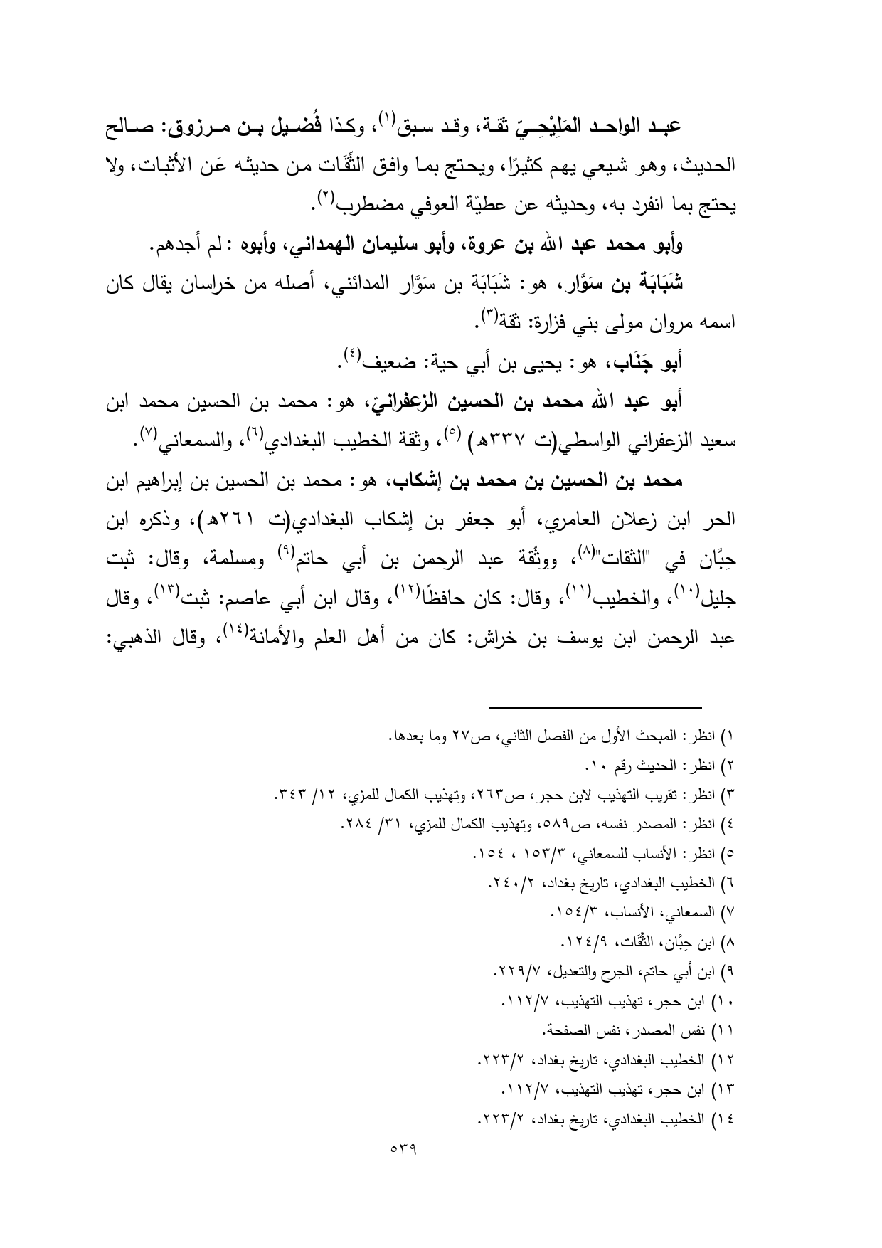 (¬5) انظر: الأنساب للسمعاني، 3/ 153، 154.
