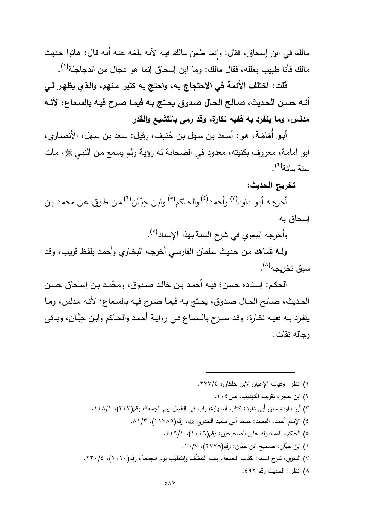أخرجه أبو داود (¬3) وأحمد (¬4) والحاكم (¬5) وابن حِبَّان (¬6) من طرق عن محمد بن إسحاق به
