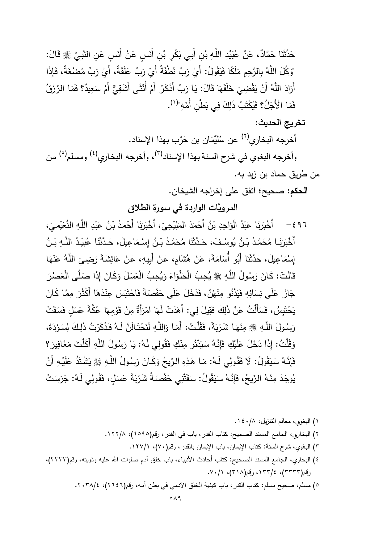 (¬5) مسلم، صحيح مسلم: كتاب القدر، باب كيفية الخلق الآدمي في بطن أمه، رقم (2646)، 4/ 2038.