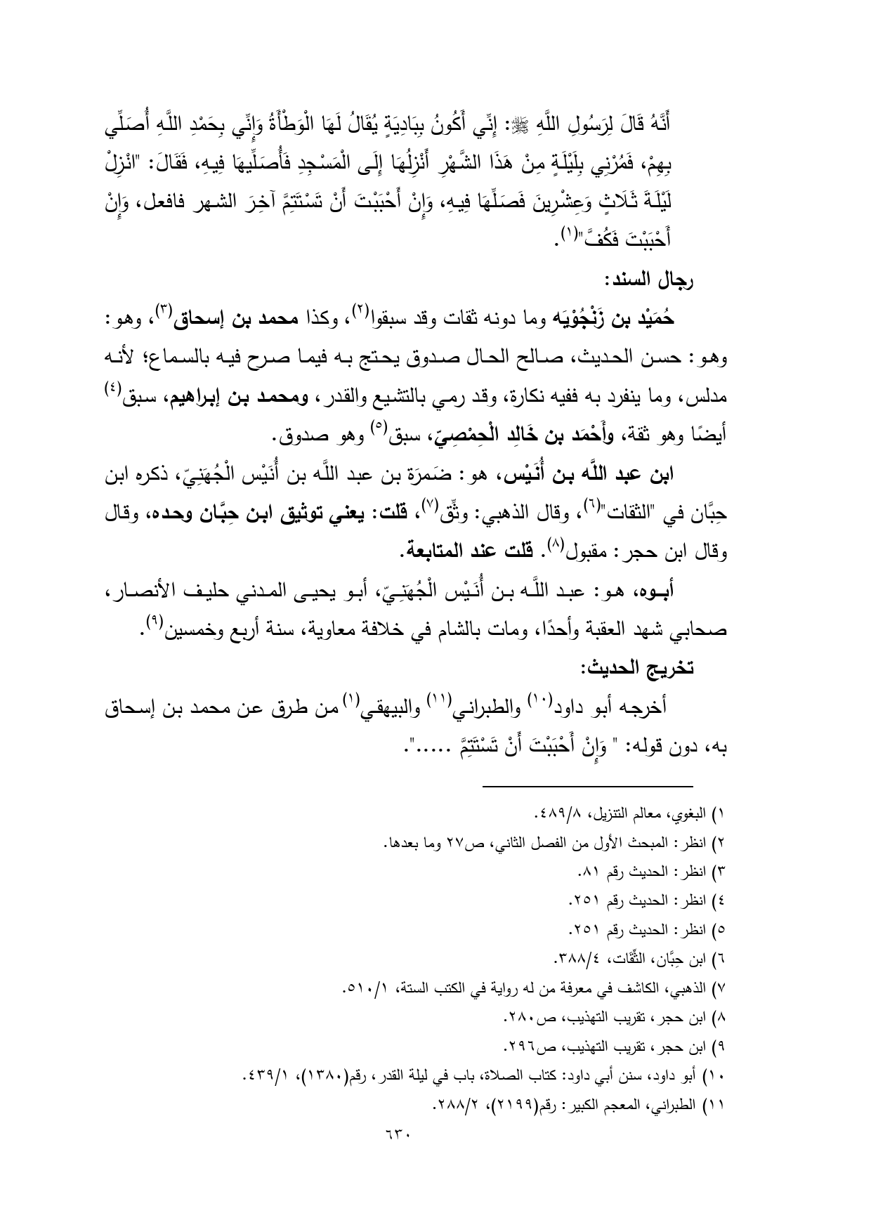 حُمَيْد بن زَنْجُوْيَه وما دونه ثقات وقد سبقوا (¬2)، وكذا محمد بن إسحاق (¬3)، وهو: حسن الحديث، صالح الحال صدوق يحتج به فيما صرح فيه بالسماع؛ لأنه مدلس، وما ينفرد به ففيه نكارة، وقد رمي بالتشيع والقدر، ومحمد بن إبراهيم، سبق (¬4) أيضًا وهو ثقة، وأَحْمَد بن خَالِد الْحِمْصِيّ، سبق (¬5) وهو صدوق.