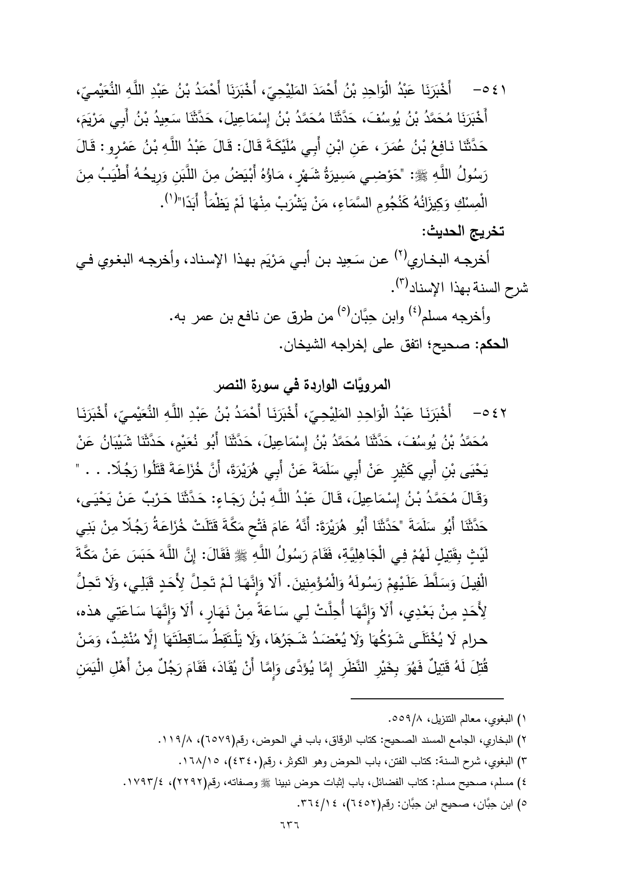 (¬3) البغوي، شرح السنة: كتاب الفتن، باب الحوض وهو الكوثر، رقم (4340)، 15/ 168.