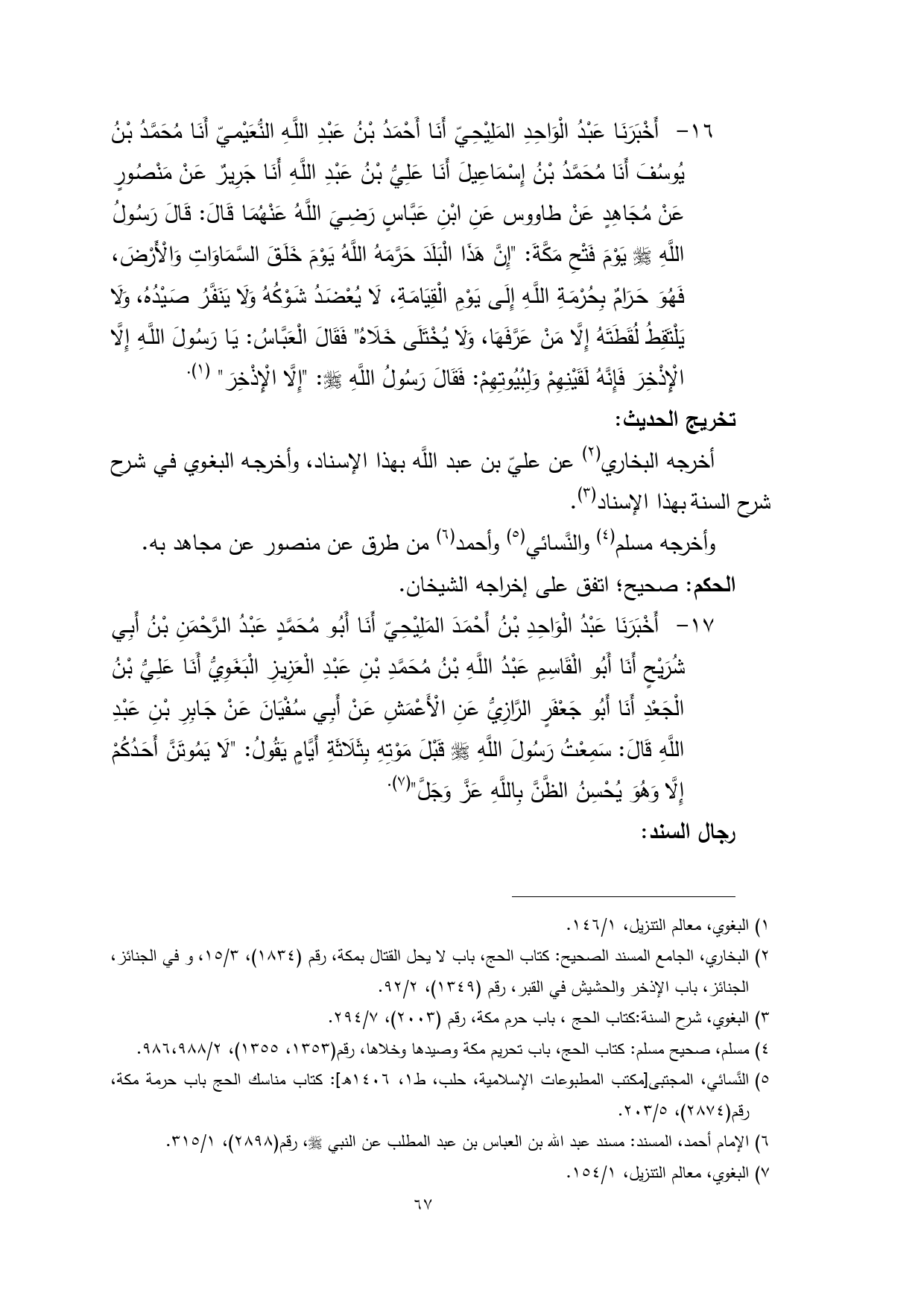 (¬3) البغوي، شرح السنة: كتاب الحج، باب حرم مكة، رقم (2003)، 7/ 294.