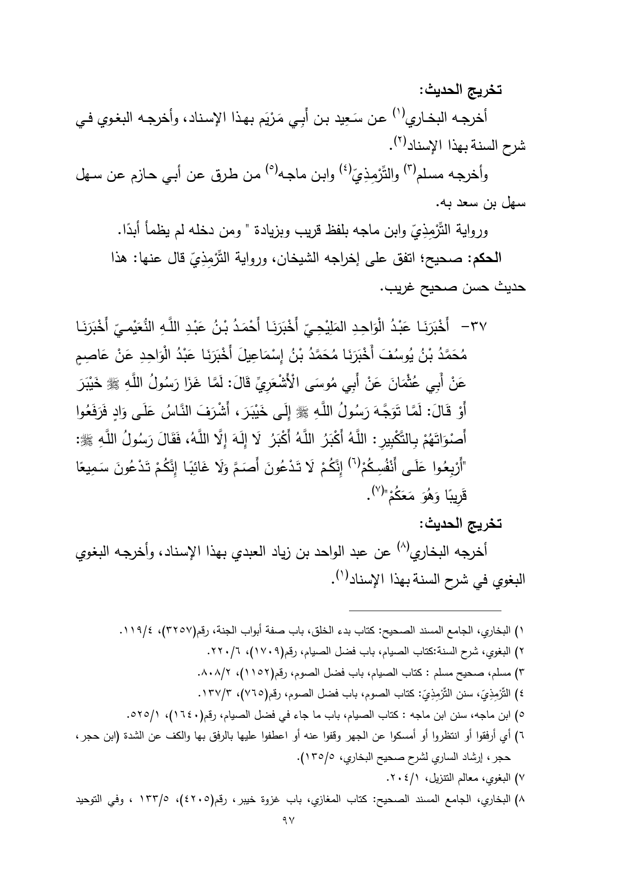 (¬8) البخاري، الجامع المسند الصحيح: كتاب المغازي، باب غزوة خيبر، رقم (4205)، 5/ 133، وفي التوحيد رقم (7386)، وفي الجهاد والسير، رقم (2992).