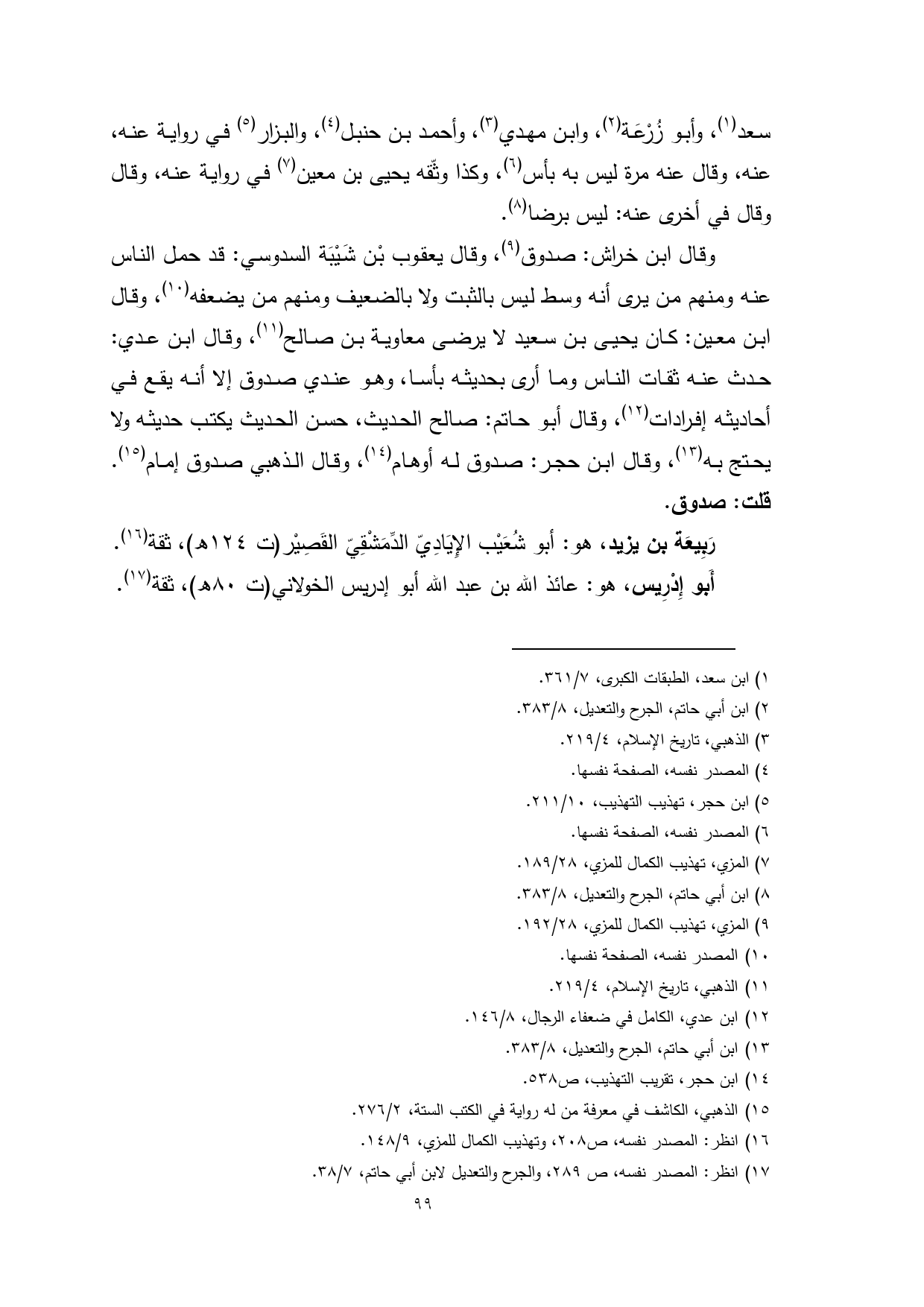 (¬16) انظر: المصدر نفسه، ص 208، وتهذيب الكمال للمزي، 9/ 148.