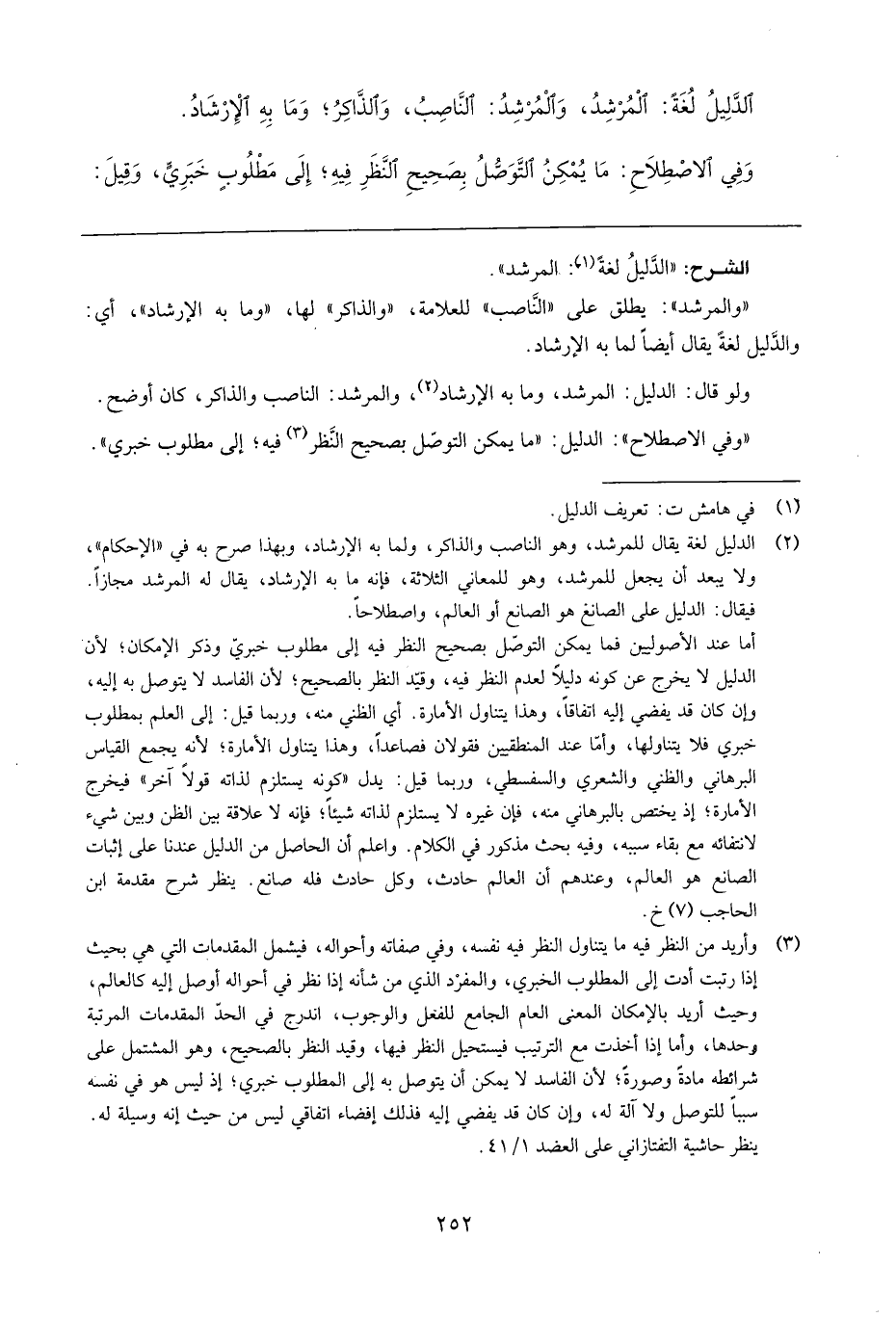 الشَّرْح: " الدَّلِيل لُغَة: المرشد ".