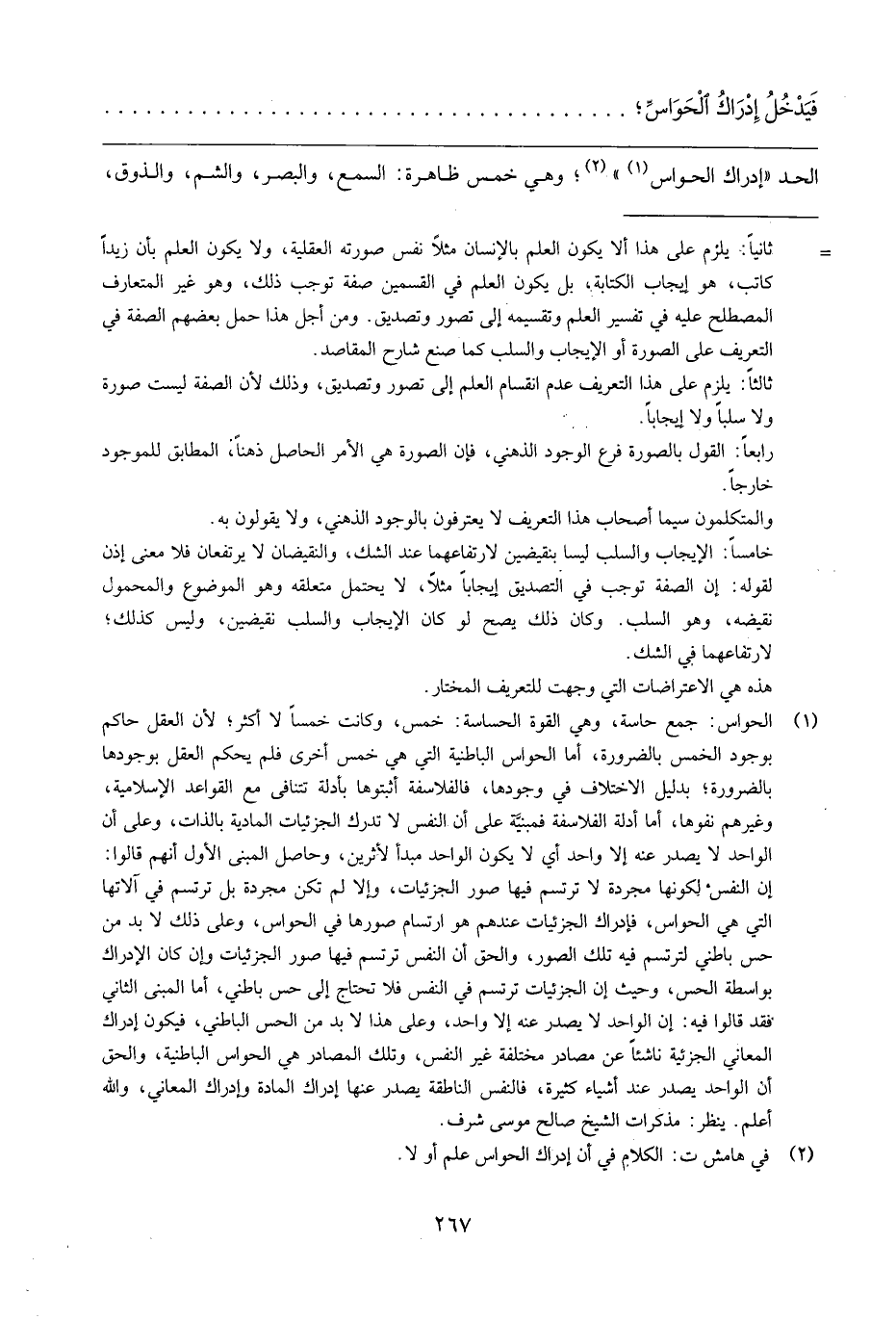 هَامِش الْحَد " إِدْرَاك الْحَواس "؛ وَهِي خمس ظَاهِرَة: السّمع، وَالْبَصَر، والشم، والذوق،