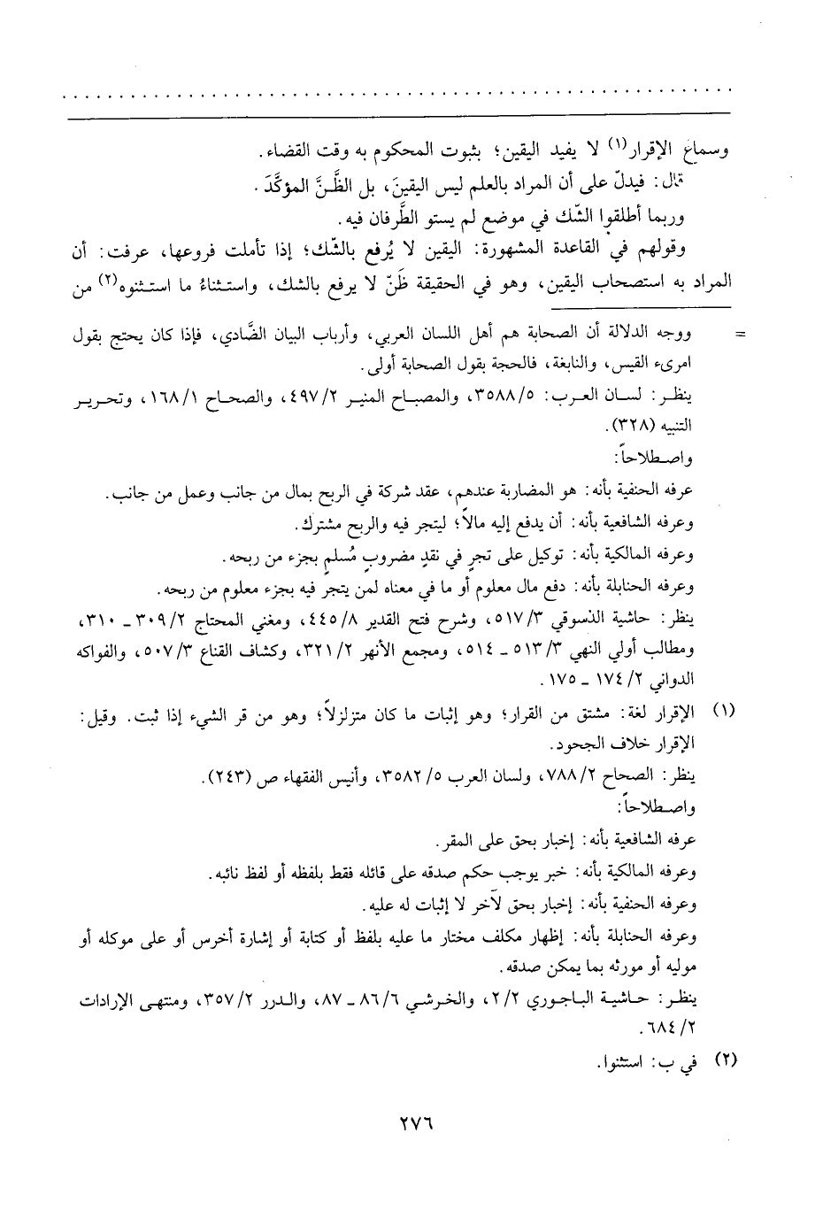 هَامِش وَسَمَاع الْإِقْرَار لَا يُفِيد الْيَقِين؛ بِثُبُوت الْمَحْكُوم بِهِ وَقت الْقَضَاء.