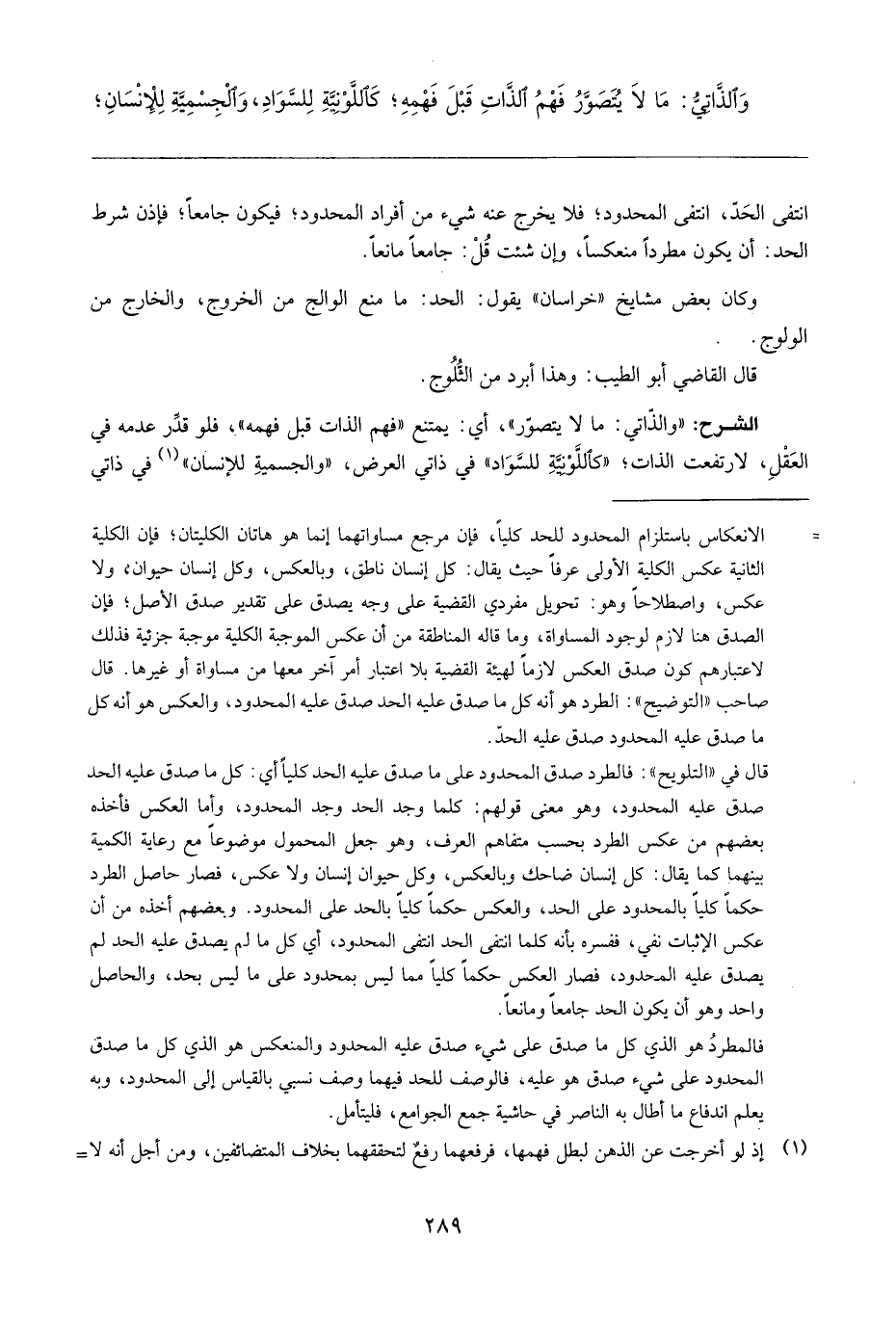 هَامِش انْتَفَى الْحَد، انْتَفَى الْمَحْدُود؛ فَلَا يخرج عَنهُ شَيْء من أَفْرَاد الْمَحْدُود؛ فَيكون جَامعا؛ فَإِذن شَرط الْحَد: أَن يكون مطردا منعكسا، وَإِن شِئْت قل: جَامعا مَانِعا.
