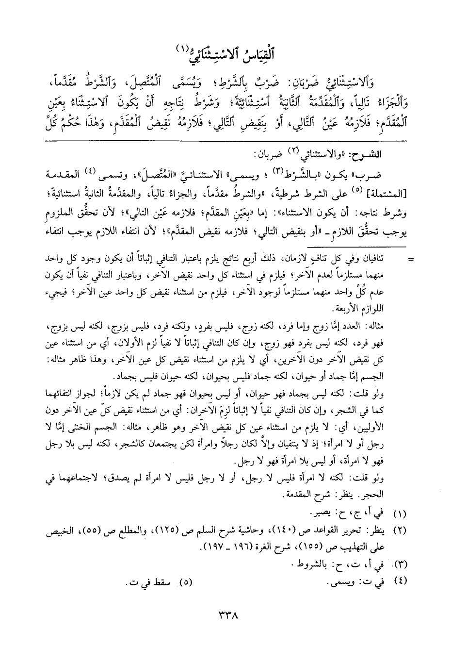 الشَّرْح: " والاستثنائي ضَرْبَان: