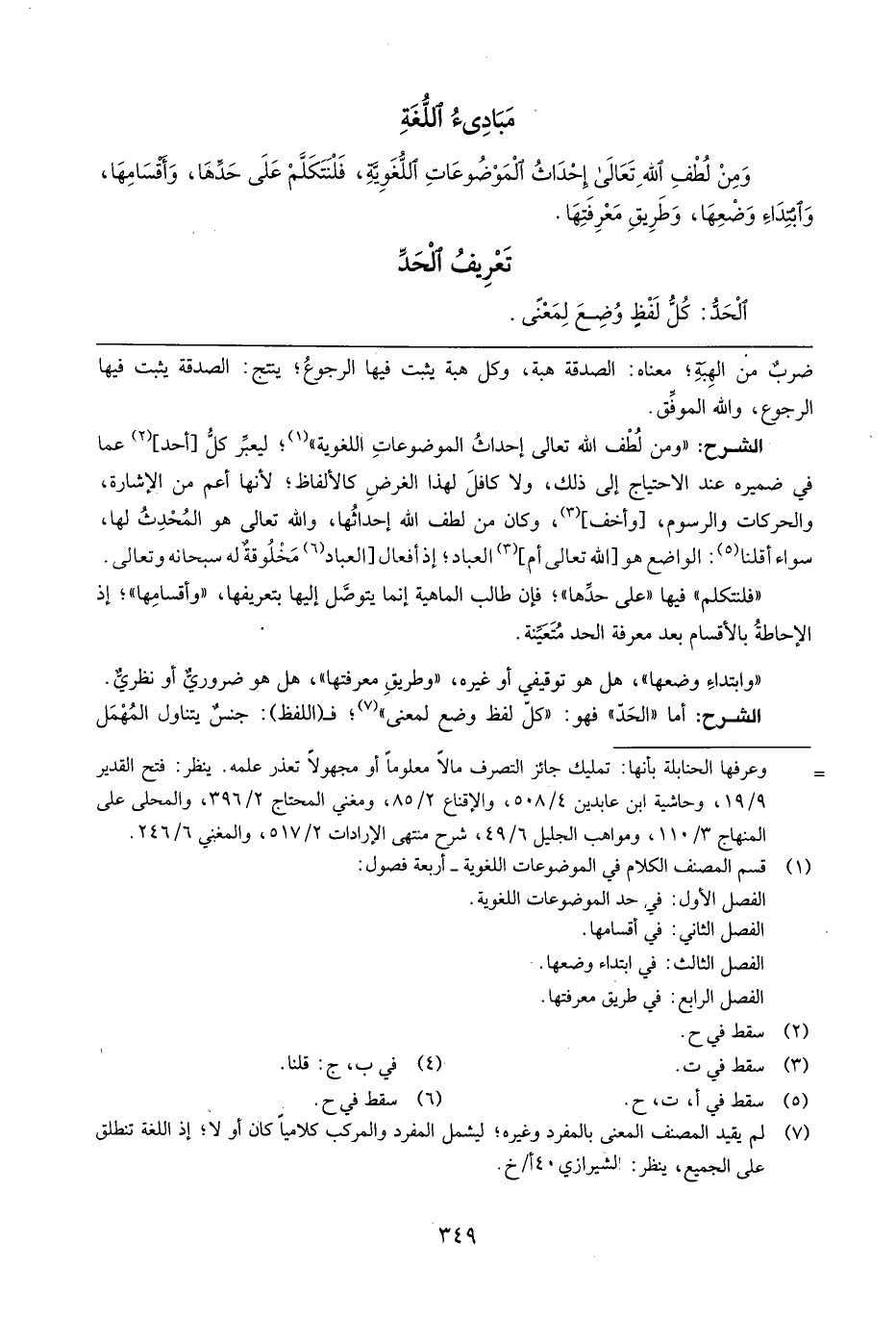 وَمن لطف الله تَعَالَى إِحْدَاث الموضوعات اللُّغَوِيَّة، فلنتكلم على حَدهَا، وأقسامها، وَابْتِدَاء وَضعهَا، وَطَرِيق مَعْرفَتهَا.
