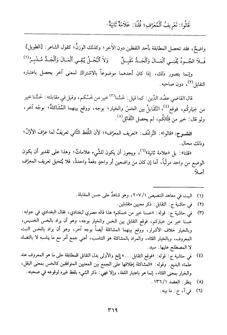 الشَّرْح: " قَالُوا ": الترادف: " تَعْرِيف الْمُعَرّف "؛ لِأَن اللَّفْظ الثَّانِي تَعْرِيف لما عرف الأول؛ وَذَلِكَ محَال.