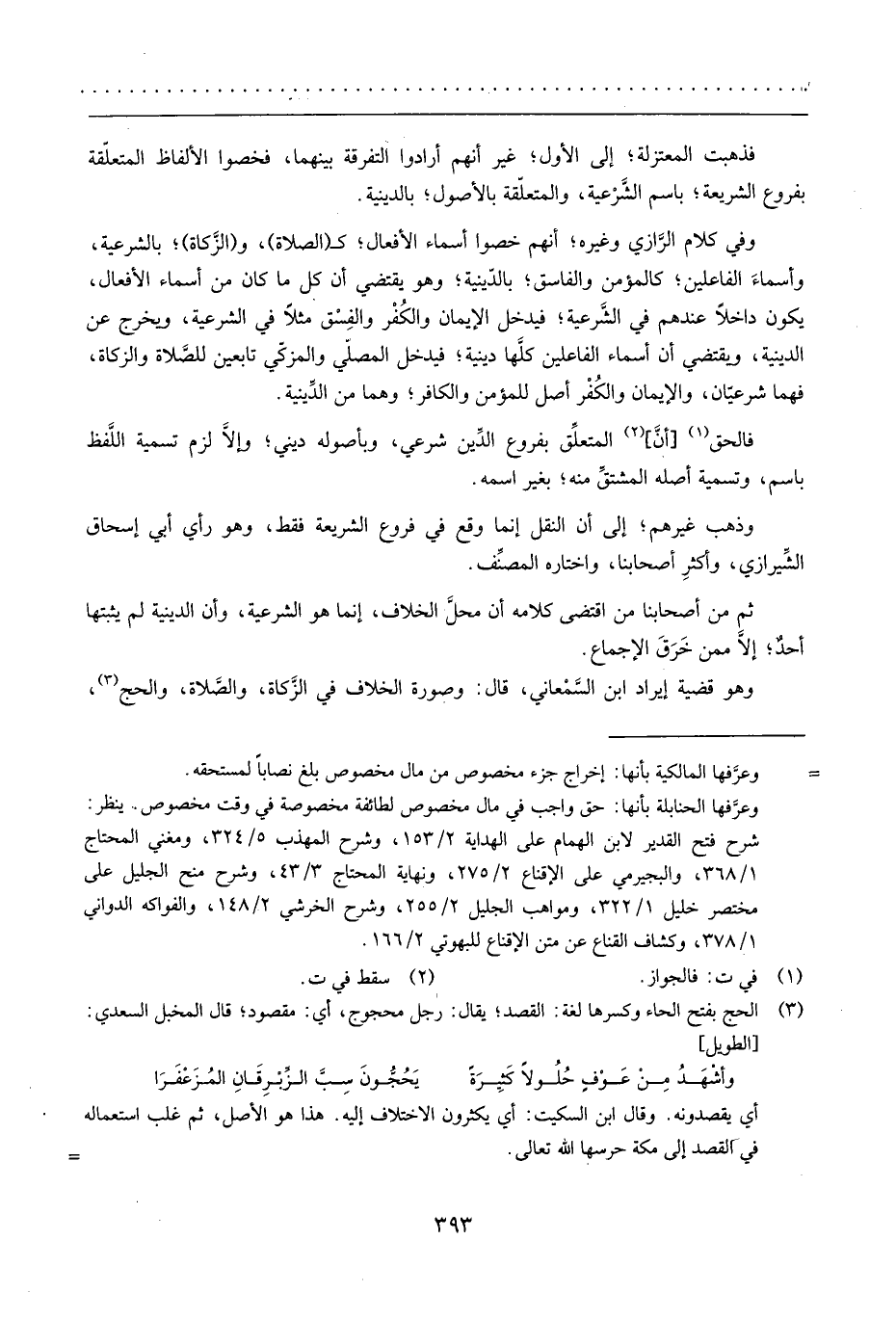 فَالْحق [أَن] الْمُتَعَلّق بِفُرُوع الدّين شَرْعِي، وبأصوله ديني؛ وَإِلَّا لزم تَسْمِيَة اللَّفْظ باسم، وَتَسْمِيَة أَصله الْمُشْتَقّ مِنْهُ؛ بِغَيْر اسْمه.