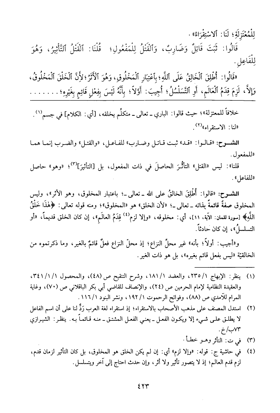 للمعتزلة؛ لنا: الاستقراء ".