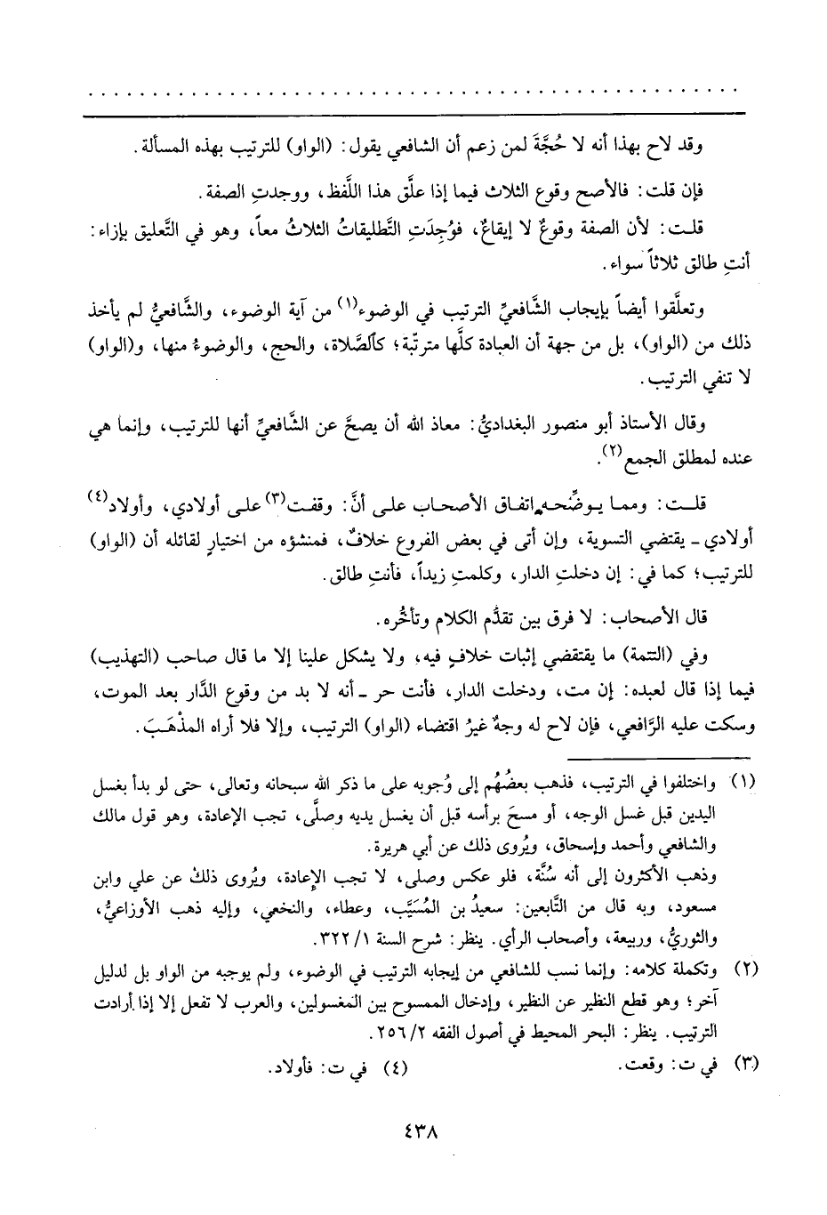 وَقَالَ الْأُسْتَاذ أَبُو مَنْصُور الْبَغْدَادِيّ: معَاذ الله أَن يَصح عَن الشَّافِعِي أَنَّهَا للتَّرْتِيب، وَإِنَّمَا هِيَ عِنْده لمُطلق الْجمع.