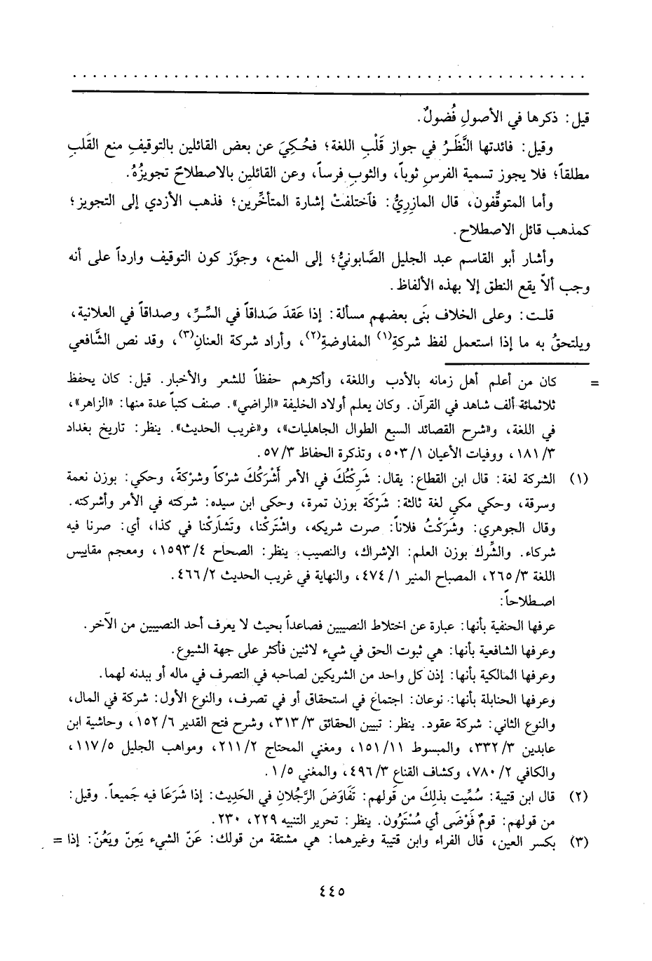 هَامِش قيل: ذكرهَا فِي الْأُصُول فضول.