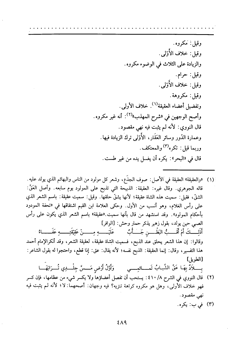 وتفضيل أَعْضَاء الْعَقِيقَة. خلاف الأولى.