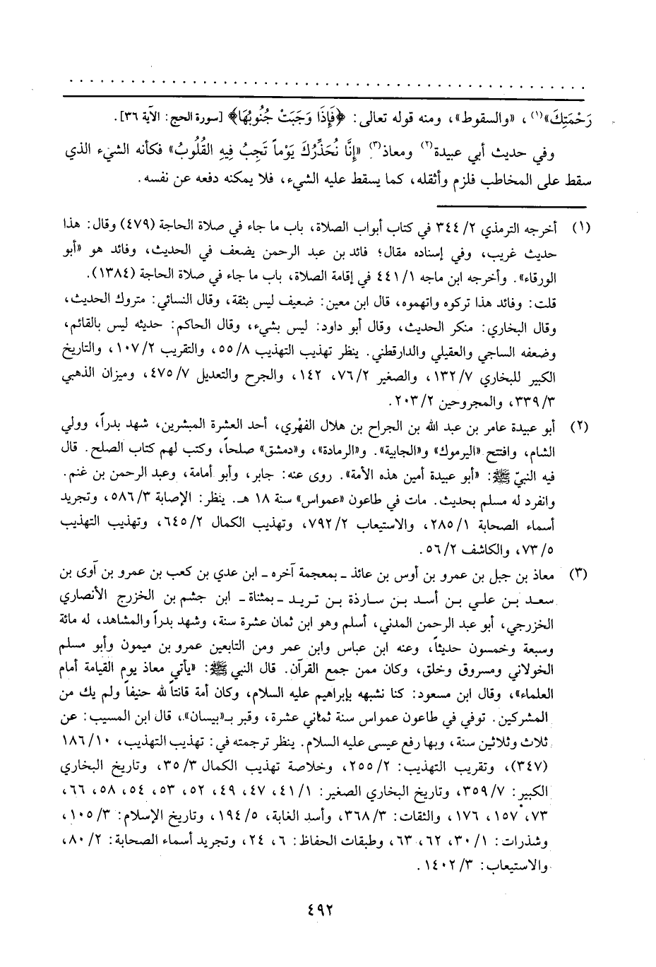 وَفِي حَدِيث أبي عُبَيْدَة ومعاذ " إِنَّا نحذرك يَوْمًا تجب فِيهِ الْقُلُوب " فَكَأَنَّهُ الشَّيْء الَّذِي سقط على الْمُخَاطب فَلَزِمَ وأثقله، كَمَا يسْقط عَلَيْهِ الشَّيْء. فَلَا يُمكنهُ دَفعه عَن نَفسه.
