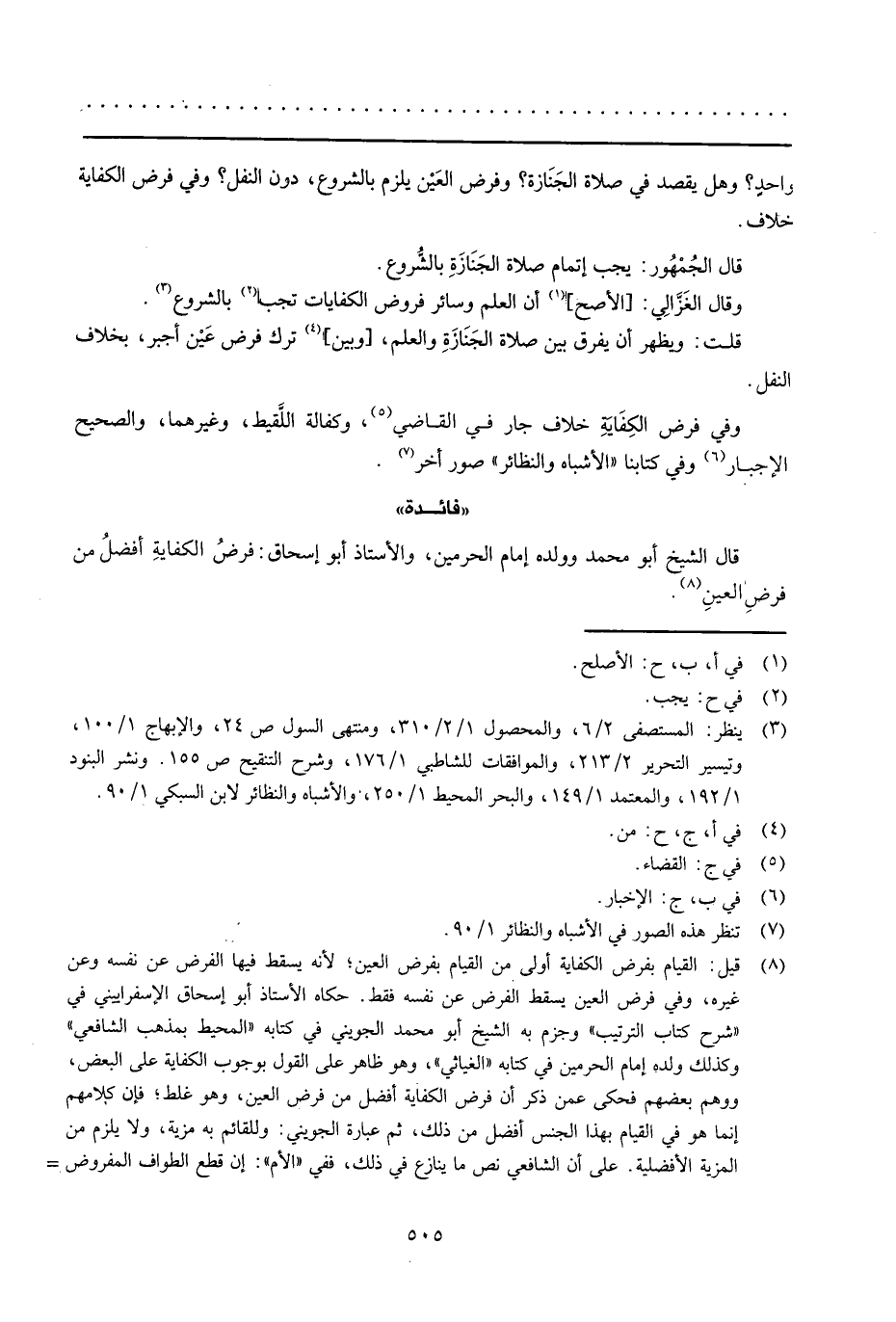 هَامِش وَاحِد؟ وَهل يقْصد فِي صَلَاة الْجِنَازَة؟ وَفرض الْعين يلْزم بِالشُّرُوعِ، دون النَّفْل؟ وَفِي فرض الْكِفَايَة خلاف.