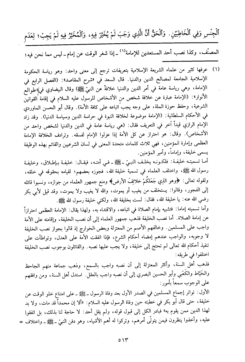 هَامِش المُصَنّف، وَكَذَا نصب أحد المستعدين للْإِمَامَة - إِذا شغر الْوَقْت عَن إِمَام - لَيْسَ مِمَّا نَحن فِيهِ؛