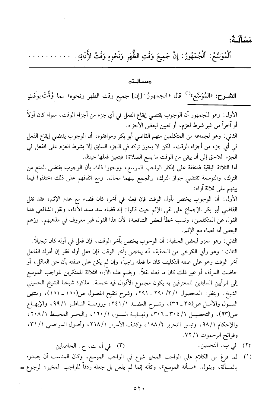 الموسع: الْجُمْهُور: إِن جَمِيع وَقت الظّهْر وَنَحْوه وَقت لأدائه ... ... ... ...