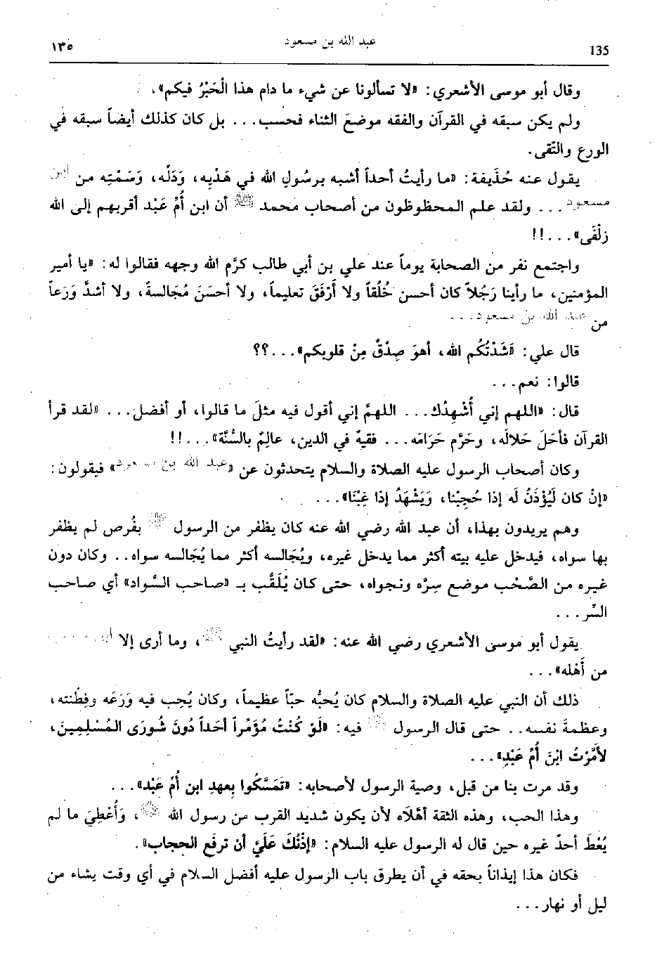 "يا أمير المؤمنين، ما رأينا رجلا كان أحسن خلقا ولا أرفق تعليما، ولا أحسن مجالسة، ولا أشد ورعا من عبد الله بن مسعود..