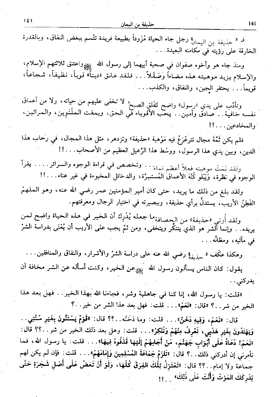 " كان الناس يسألون رسول الله صلى الله عليه وسلم عن الخير، وكنت أسأله عن الشر مخافة أن يدركني..