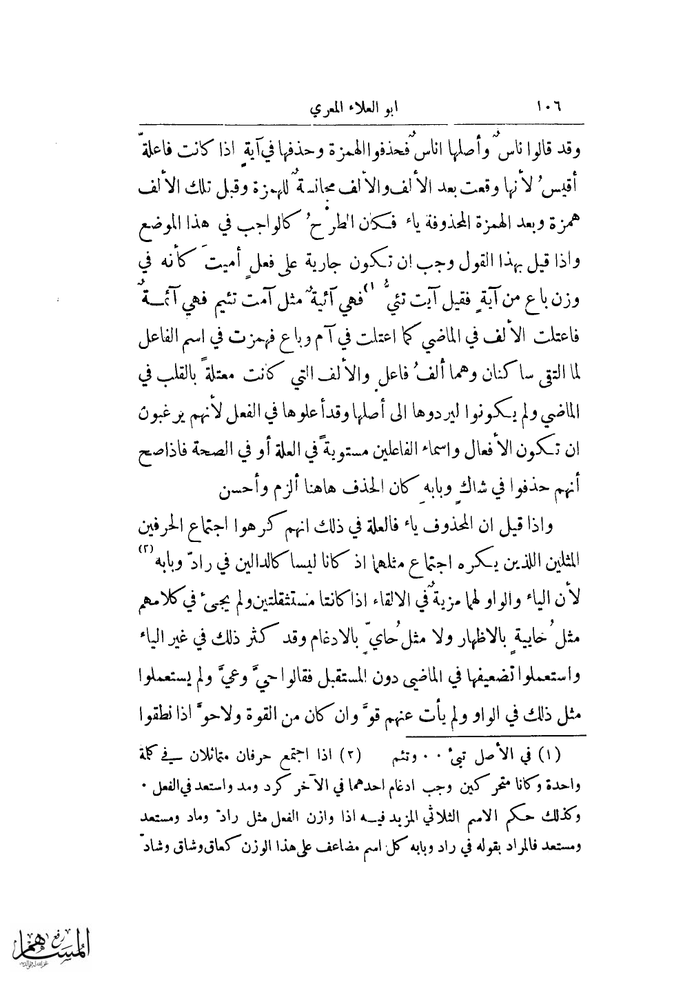 وقد قالوا ناس وأصلها أناس فحذفوا الهمزة وحذفها في آية إذا كانت فاعلة أقيس لأنها وقعت بعد الألف والألف مجانسة للهمزة وقبل تلك الألف همزة وبعد الهمزة المحذوفة ياء فكان الطرح كالواجب في هذا الموضع وإذا قيل بهذا القول وجب أن تكون جارية على فعل أميت كأنه في وزن باع من آية فقيل آيت تئي (¬1) فهي آتية مثل آمت تئيم فهي آئمة فاعتلت الألف في الماضي كما اعتلت في آم وباع فهمزت في اسم الفاعل لما التقى ساكنان وهما ألف فاعل والألف التي كانت معتلةً بالقلب في الماضي ولم يكونوا ليردوها إلى أصلها وقد أعلوها في الفعل لأنهم يرغبون أن تكون الأفعال وأسماء الفاعلين مستويةً في العلة أو في الصحة فإذا صح أنهم حذفوا في شاك وبابه كان الحذف هاهنا ألزم وأحسن