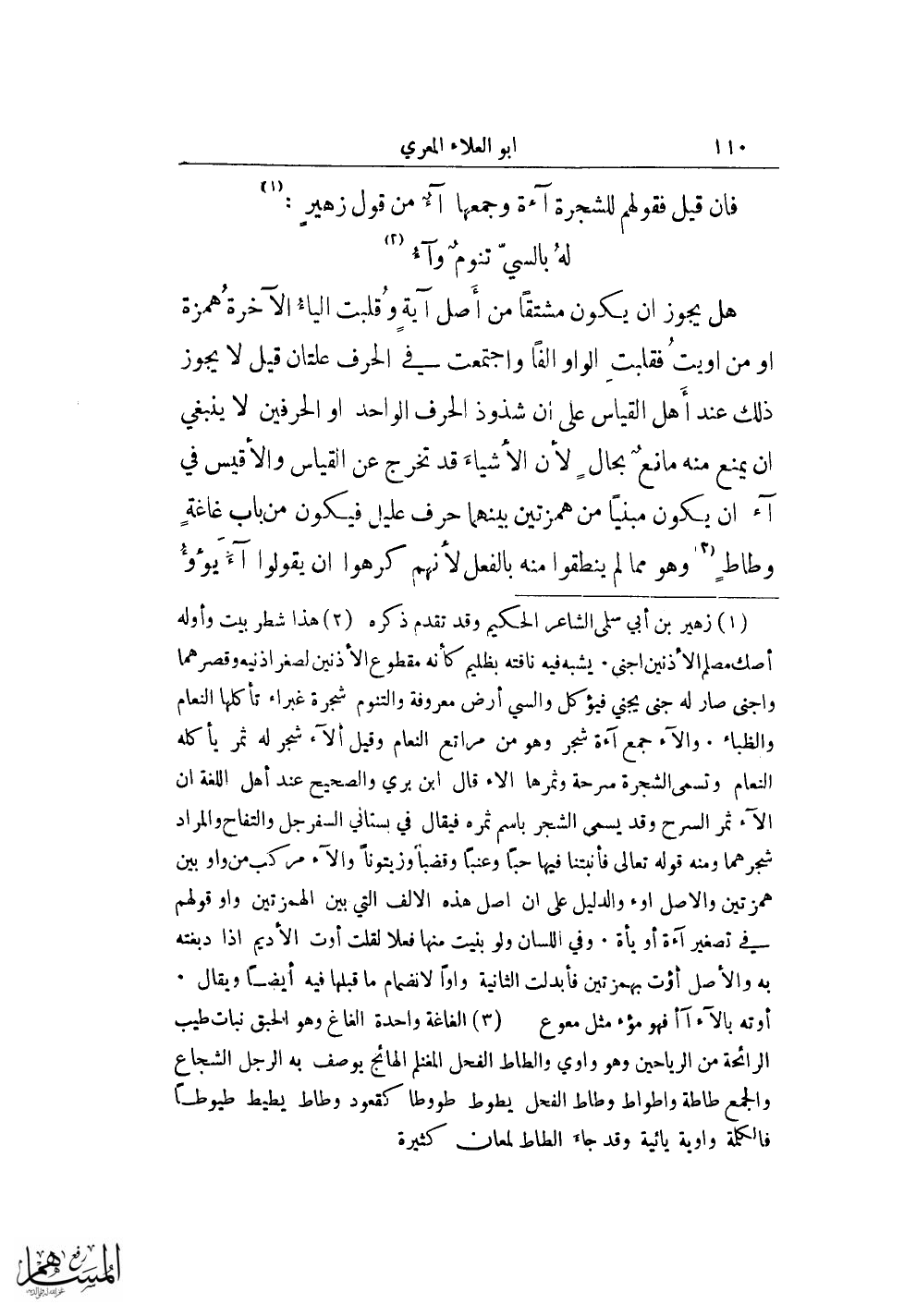 فإن قيل فقولهم للشجرة آءة وجمعها آء من قول زهير: (¬1)